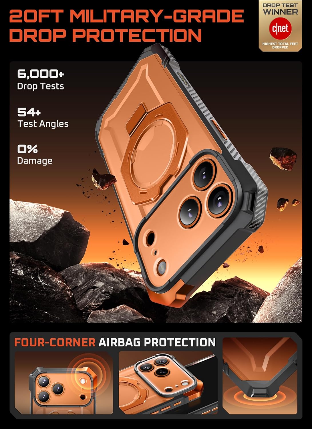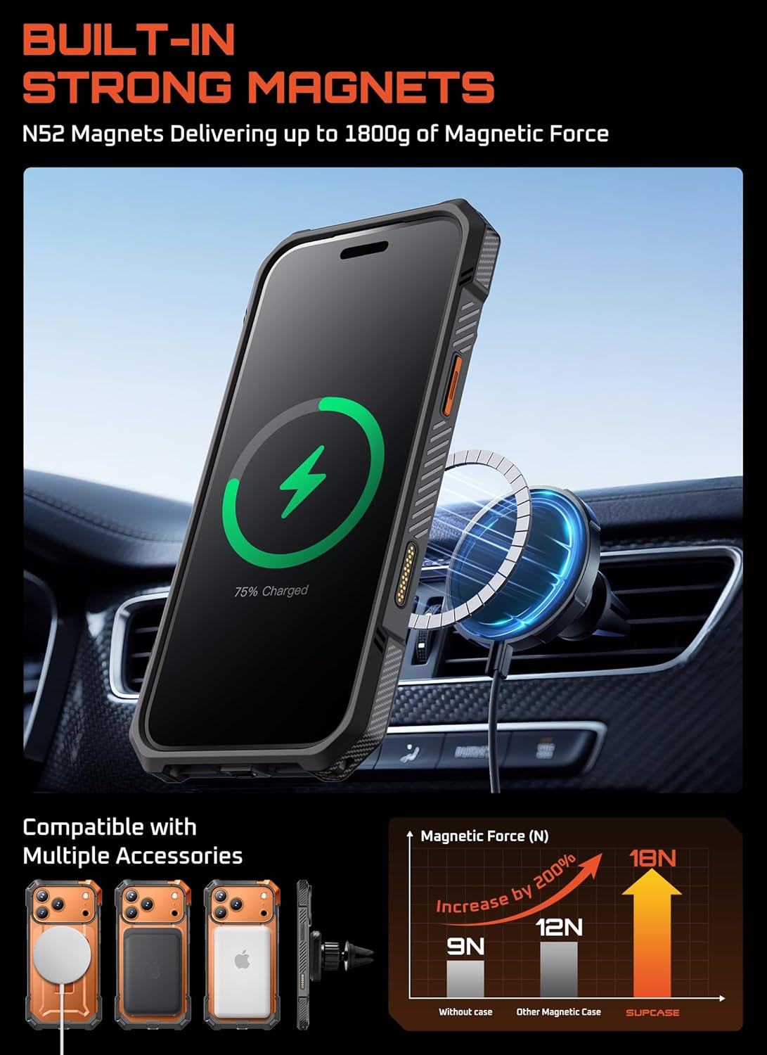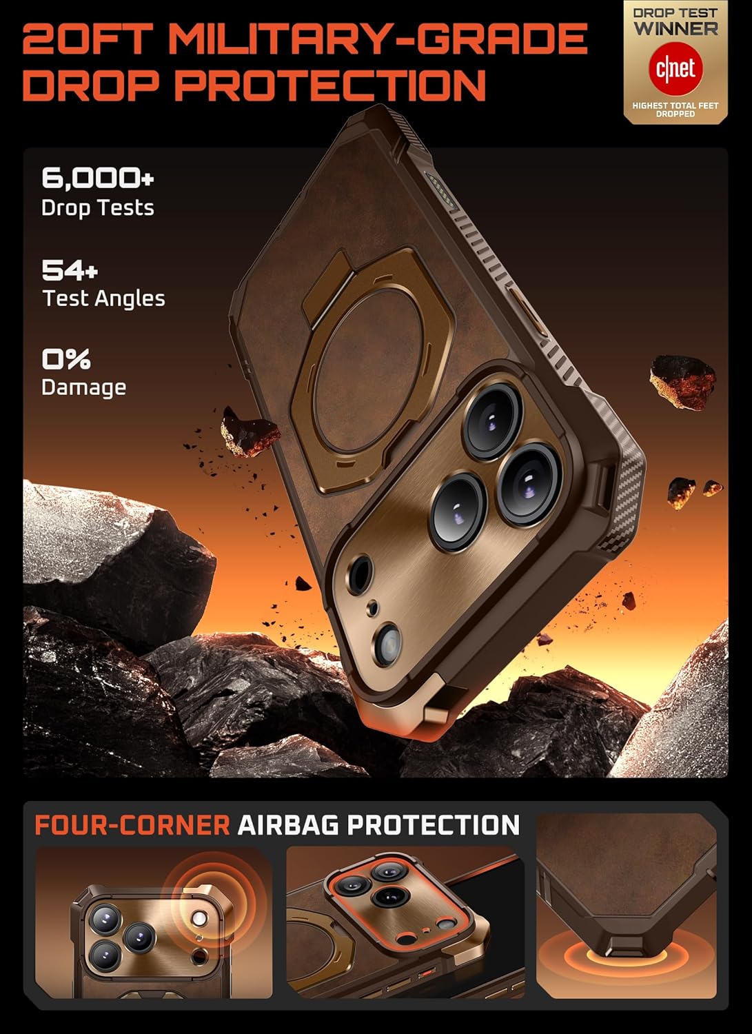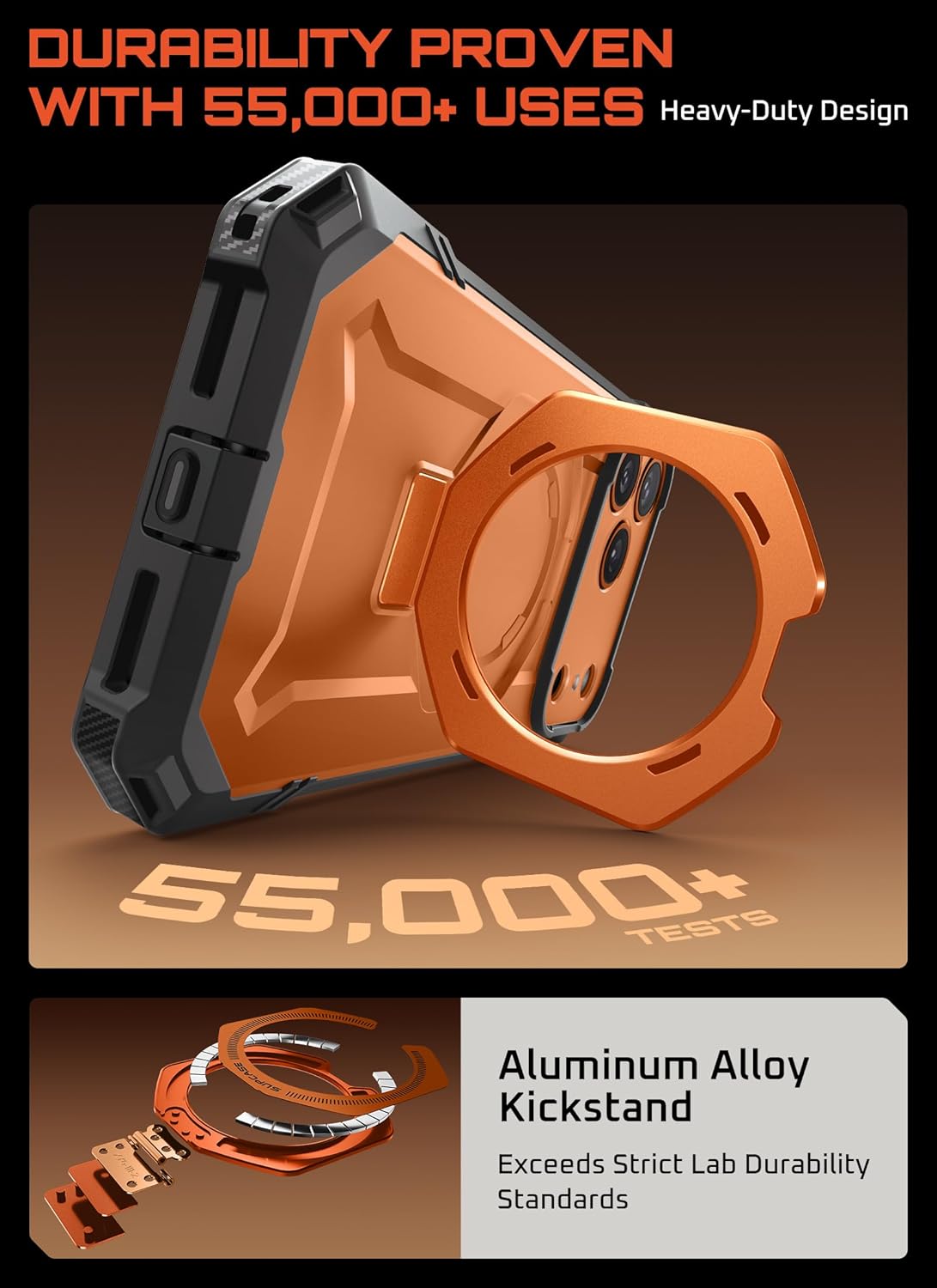 [Kickstand & MagSafe Features]: Built-in aluminum alloy kickstand provides multiple viewing angles. N52 strong magnet with up to 1800g magnetic force ensures seamless compatibility with MagSafe accessories.
