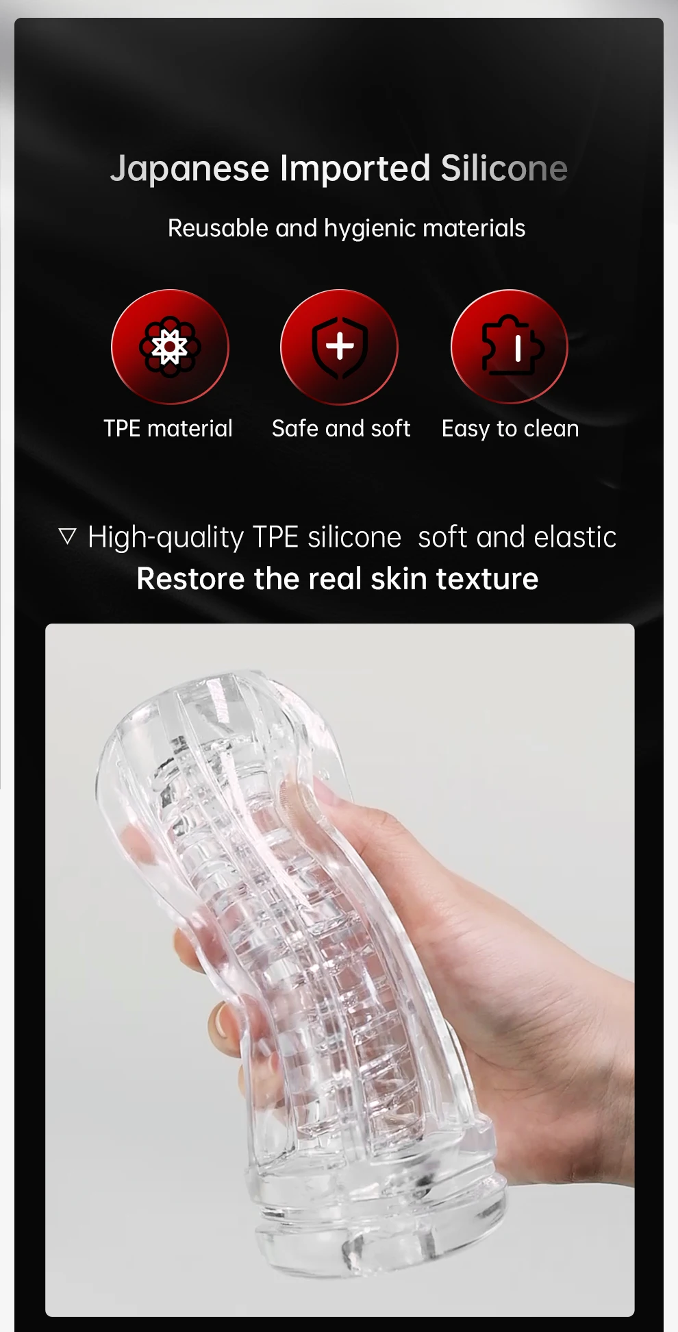 Hochwertiges tpe Silikon, weich und elastisch, stellen die echte Hauts truktur wieder her
