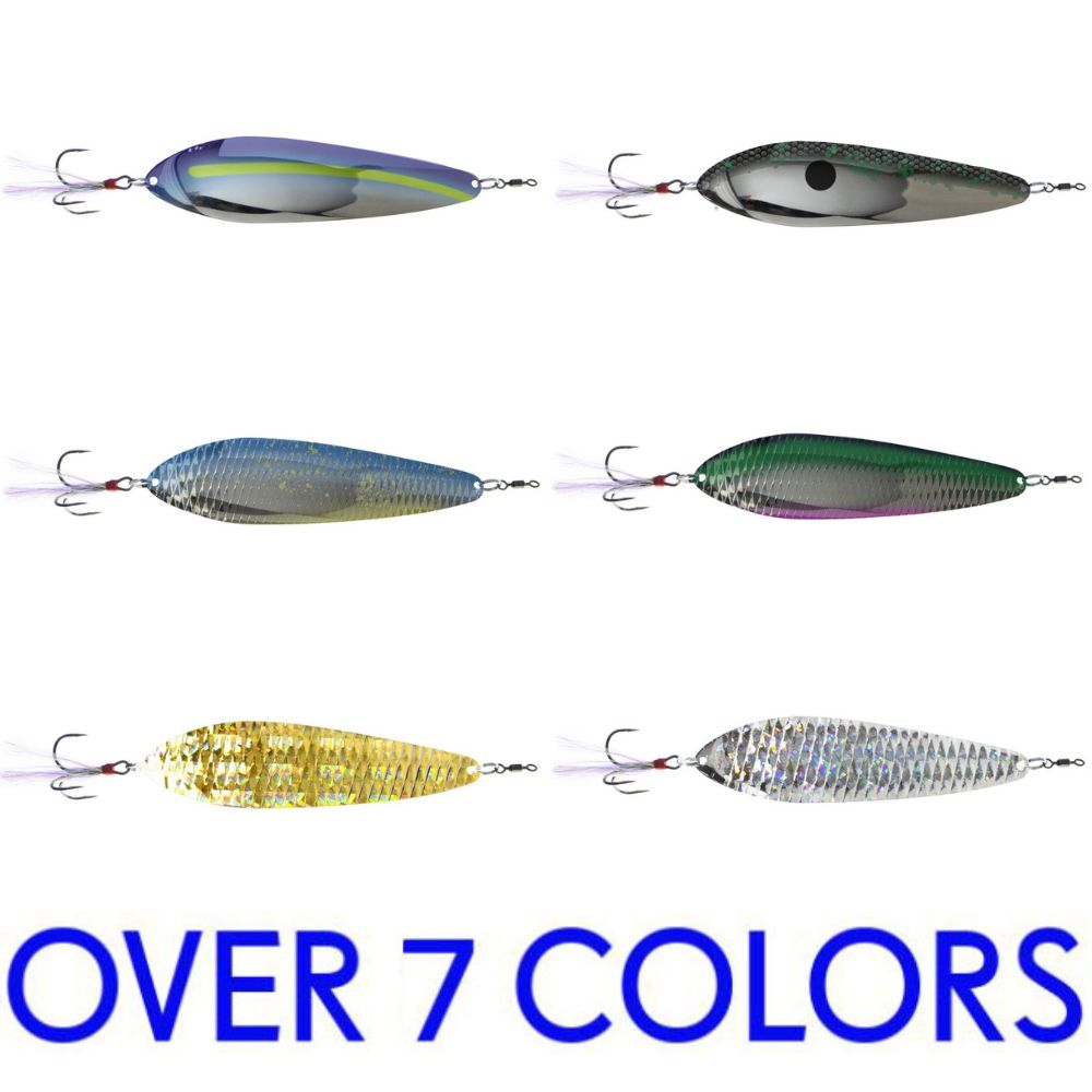 Designed by professional angler and big bait specialist Chris Zaldain, the Nichols Bass Mafia Big Larry Spoon will catch those larger fish in offshore schooling situations. the wide body of the Nichols Bass Mafia Big Larry Spoon creates an irresistible cradling action on the descent. Featuring high definition detail not found on other spoons in its class, the Big Larry Spoon is crafted with textured scale pattern finish and paint schemes. Equipped with quality components including a super sharp dressed treble hook, plus a premium ball bearing swivel and heavy duty split ring. The Nichols Bass Mafia Big Larry Spoon offers a substantial profile with the action to match.