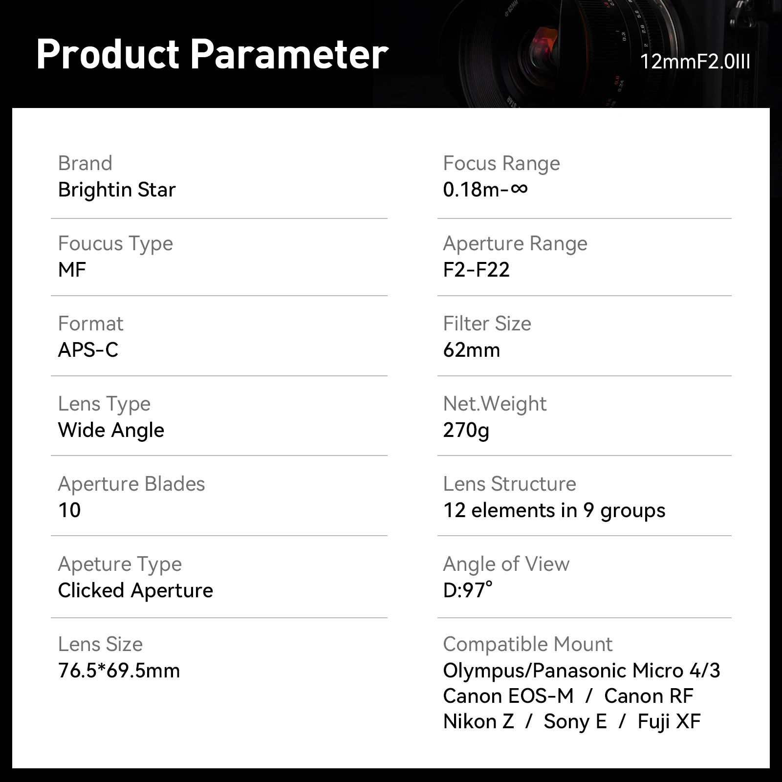 Brightin Star 12mm F2.0 III Ultra Wide-Angle APS-C MF for Sony Canon Fuji Nikon