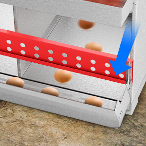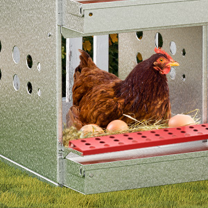 The nesting box has a slight tilt design that encourages eggs to roll forward under a secure lid, ensuring their safety until you're ready to collect them. |