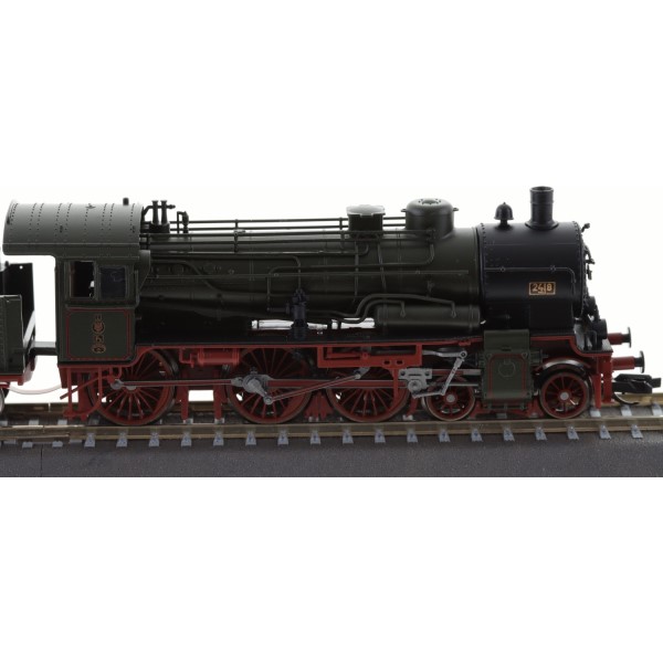 Die preußische P8 (später BR 38) war eine der erfolgreichsten Personenzuglokomotiven des frühen 20. Jahrhunderts. Ihre Ausgewogenheit zwischen Leistung, Geschwindigkeit und Wirtschaftlichkeit machte sie zum Rückgrat des Reisezugverkehrs in Preußen. In ihrer ursprünglichen Ausführung – mit typisch preußischem Laternenstil – steht sie heute sinnbildlich für die goldene Ära der Epoche I. Dieses Modell greift genau diese Epoche auf – in der Farbgebung und Beschriftung der K.P.E.V., ausgestattet mit den damals verwendeten Laternen im Gaslampenstil.