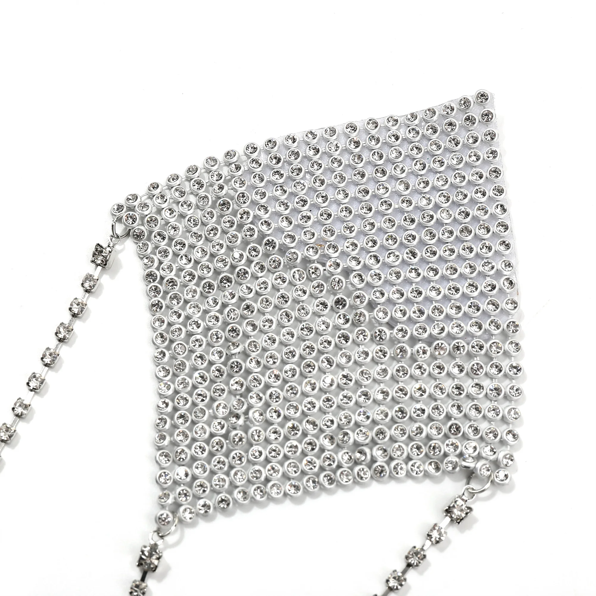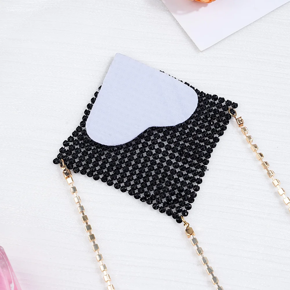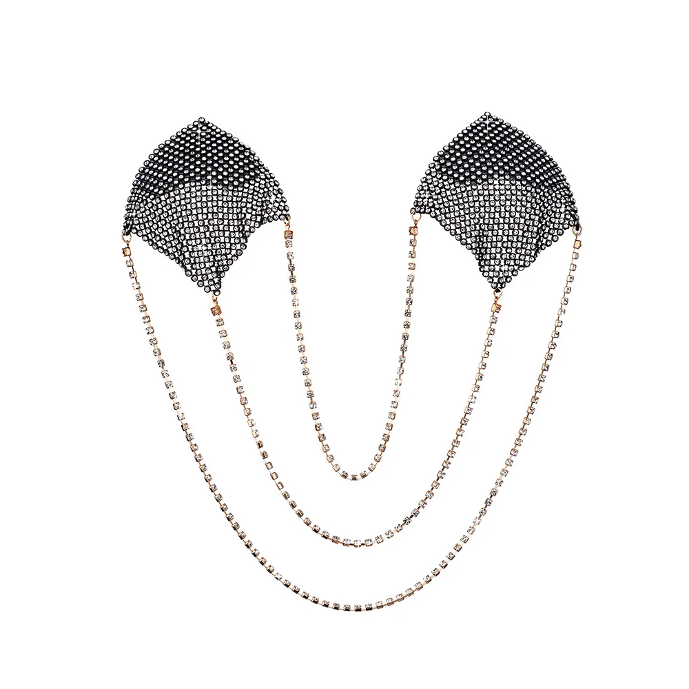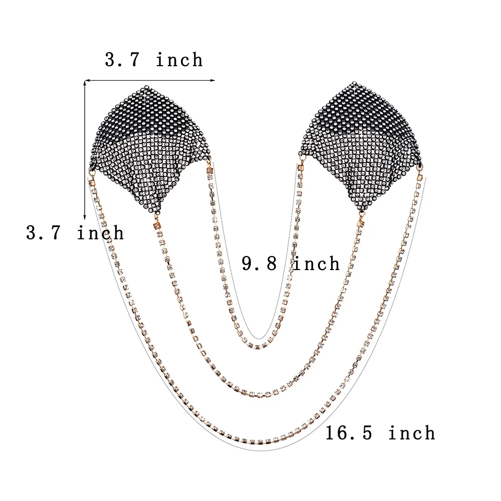 MATERIAL: Use of rhinestone aluminum mesh, silver chain connection is a highlight, a strong adhesive is on the back can make it easy to paste on your chest. Skin-friendly and smooth, don't worry when you use them.