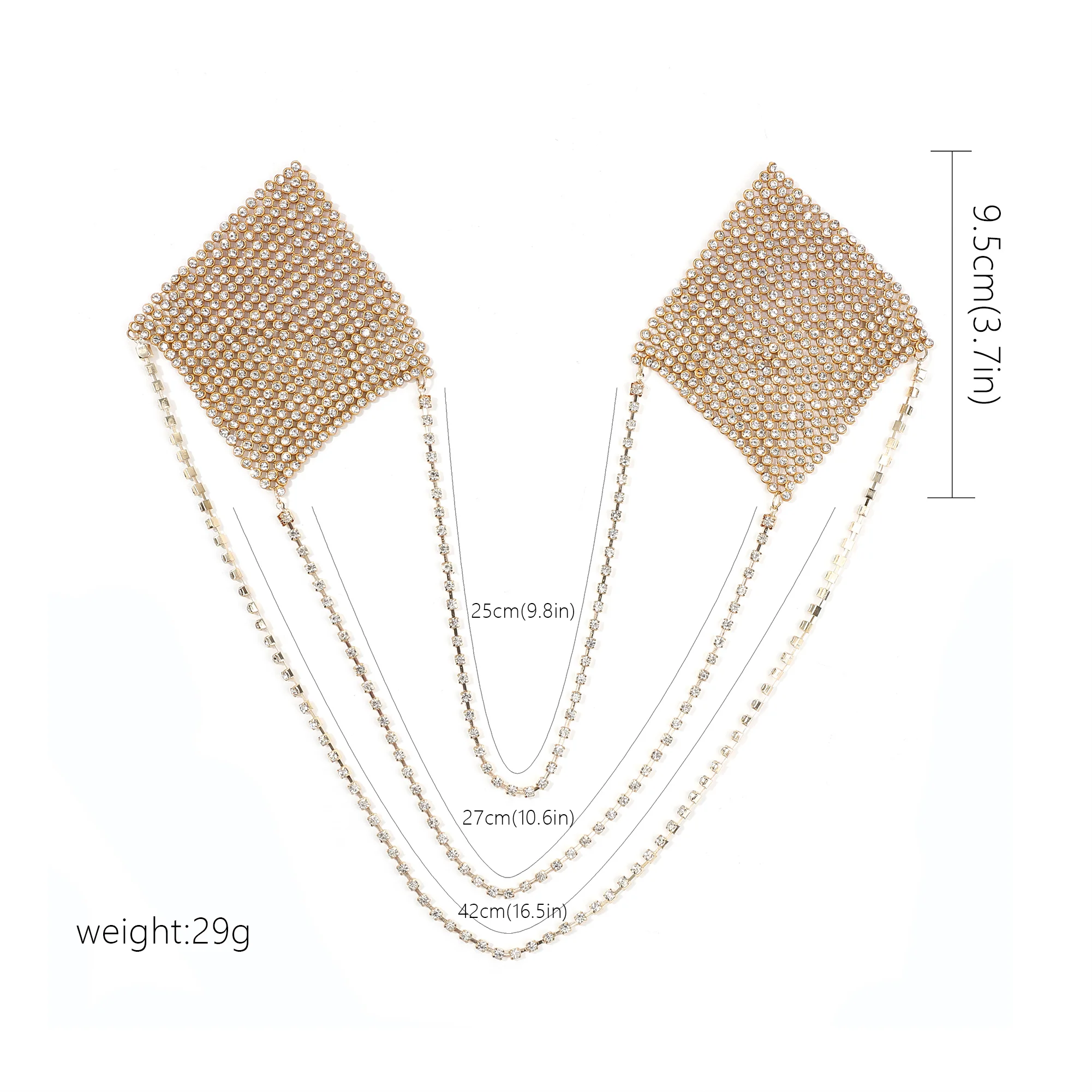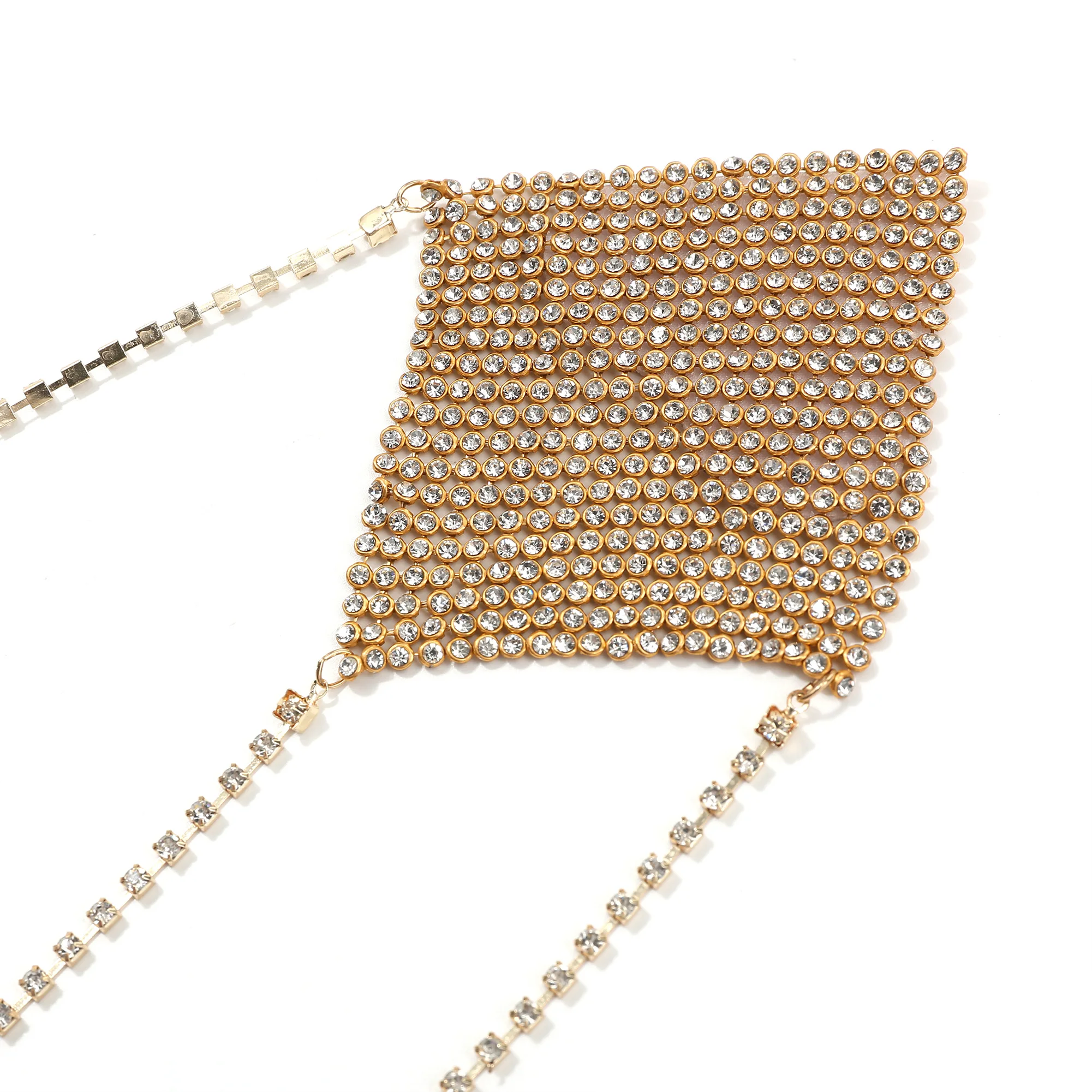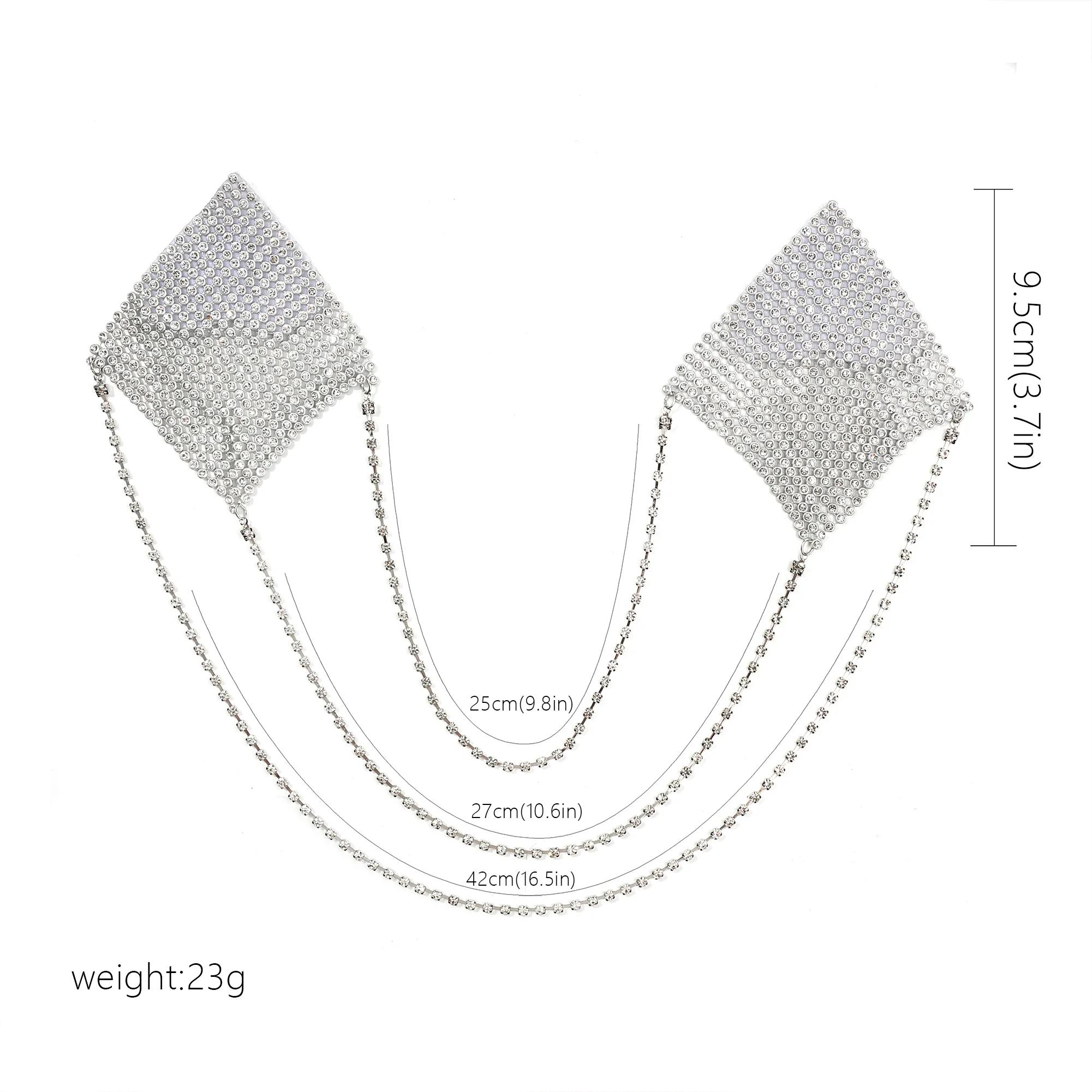 MATERIAL: Use of rhinestone aluminum mesh, silver chain connection is a highlight, a strong adhesive is on the back can make it easy to paste on your chest. Skin-friendly and smooth, don't worry when you use them.