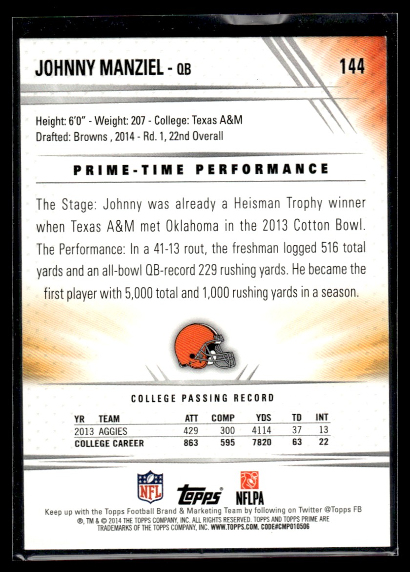 | 2014 Topps Prime Johnny Manziel Rookie Cleveland Browns #144 |