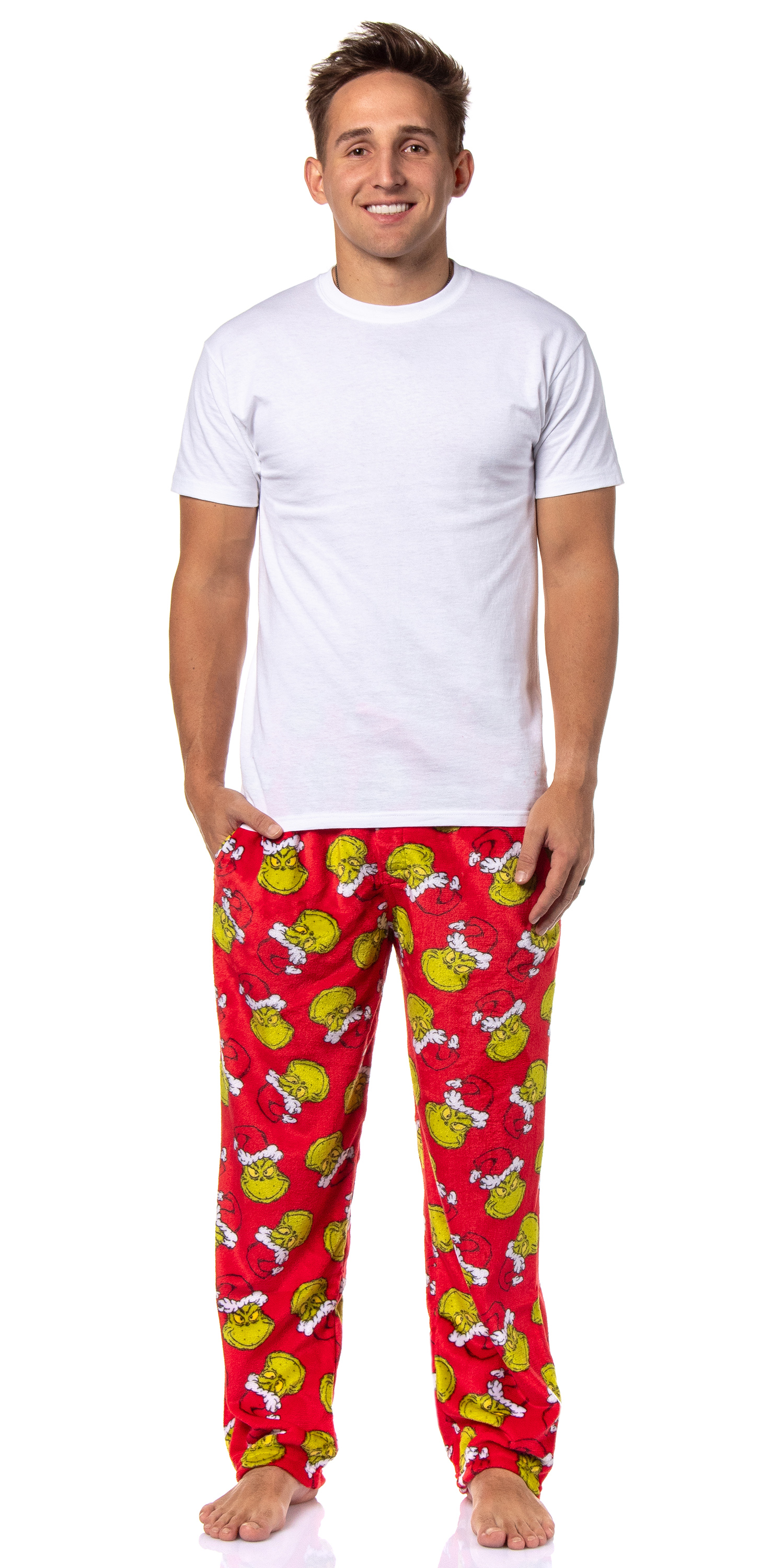 Dr. Seuss Men's GRINCH Santa Claus Super Minky Fleece Lounge Pajama Pants LG