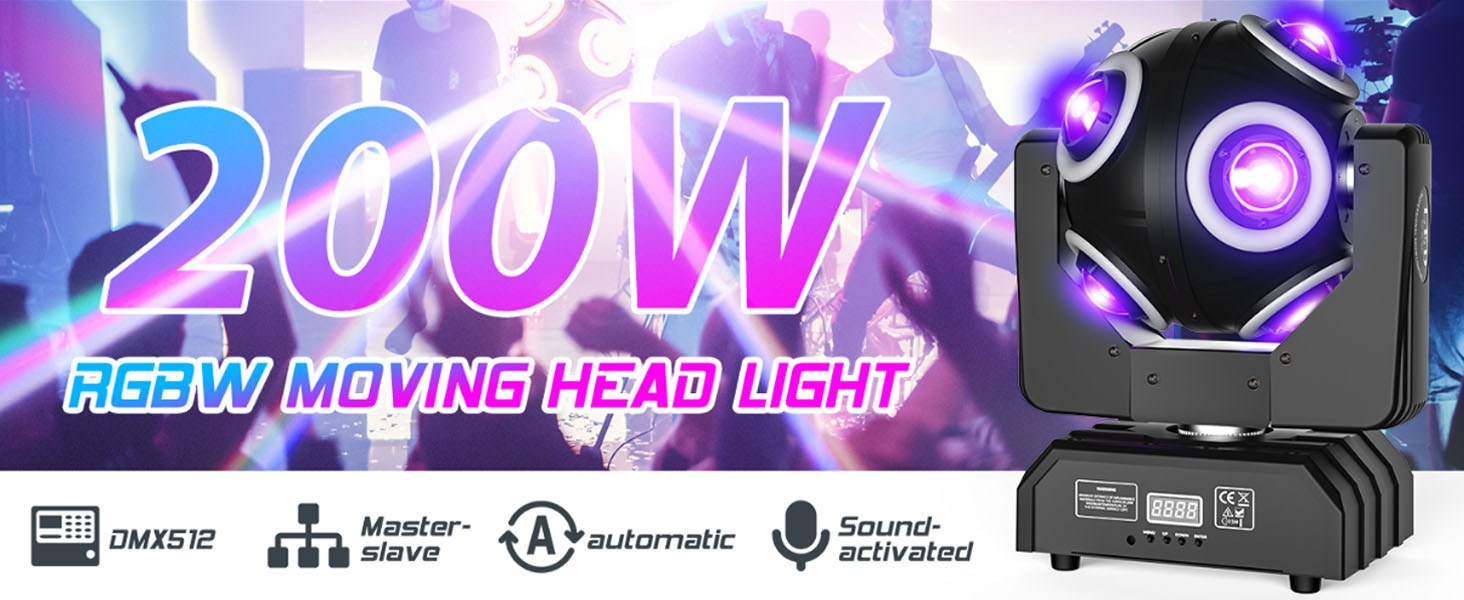 Light source: 8pcs 20w RGBW LEDs 32pcs 1w golden LEDs