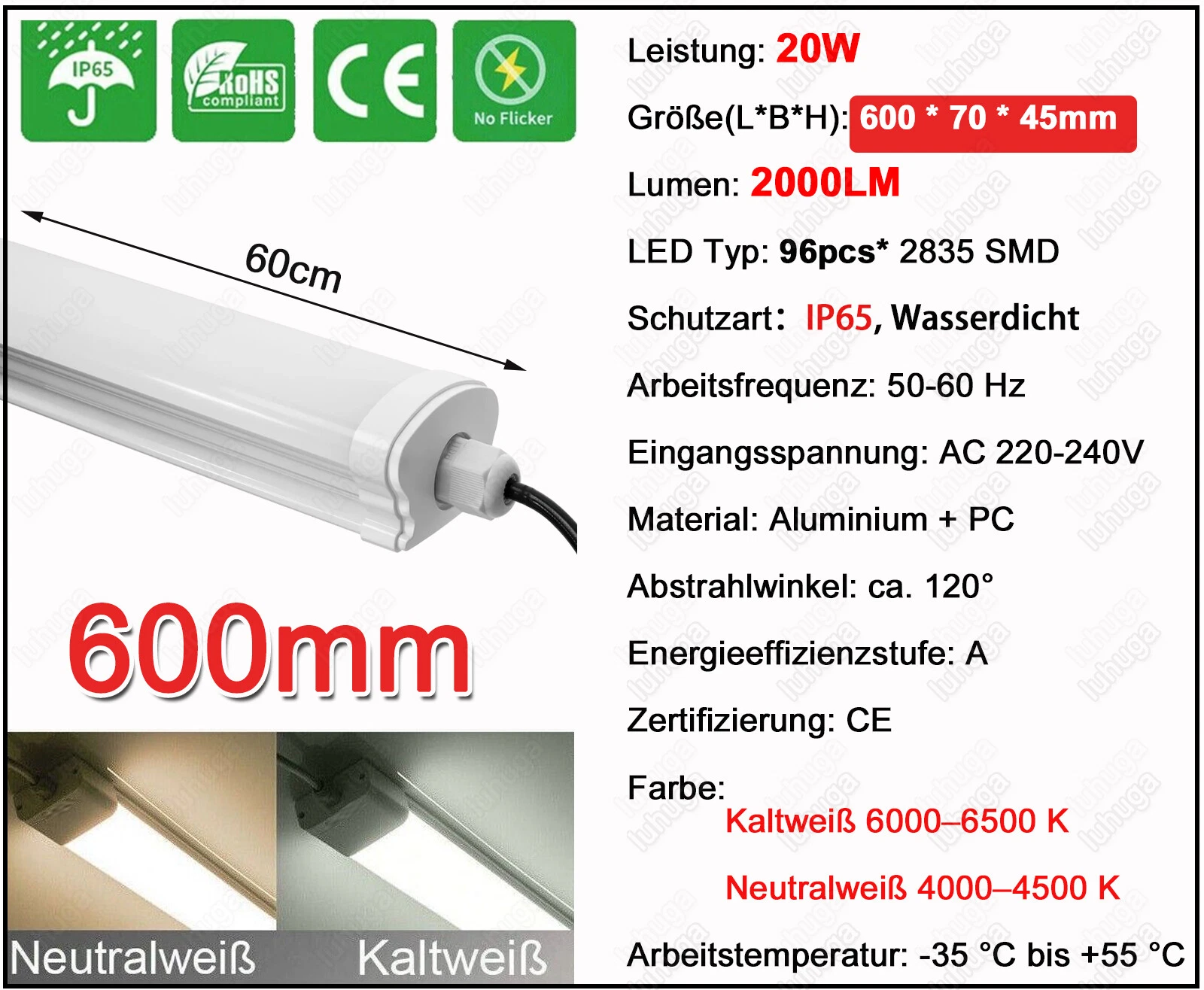 VERWENDUNG: Diese hermetische Wannenleuchte eignet sich für den Einsatz in schwierigen Arbeitsbedinungen z.B in Industriehallen, Lagerhallen, Werkst?tten in Gewerbe.