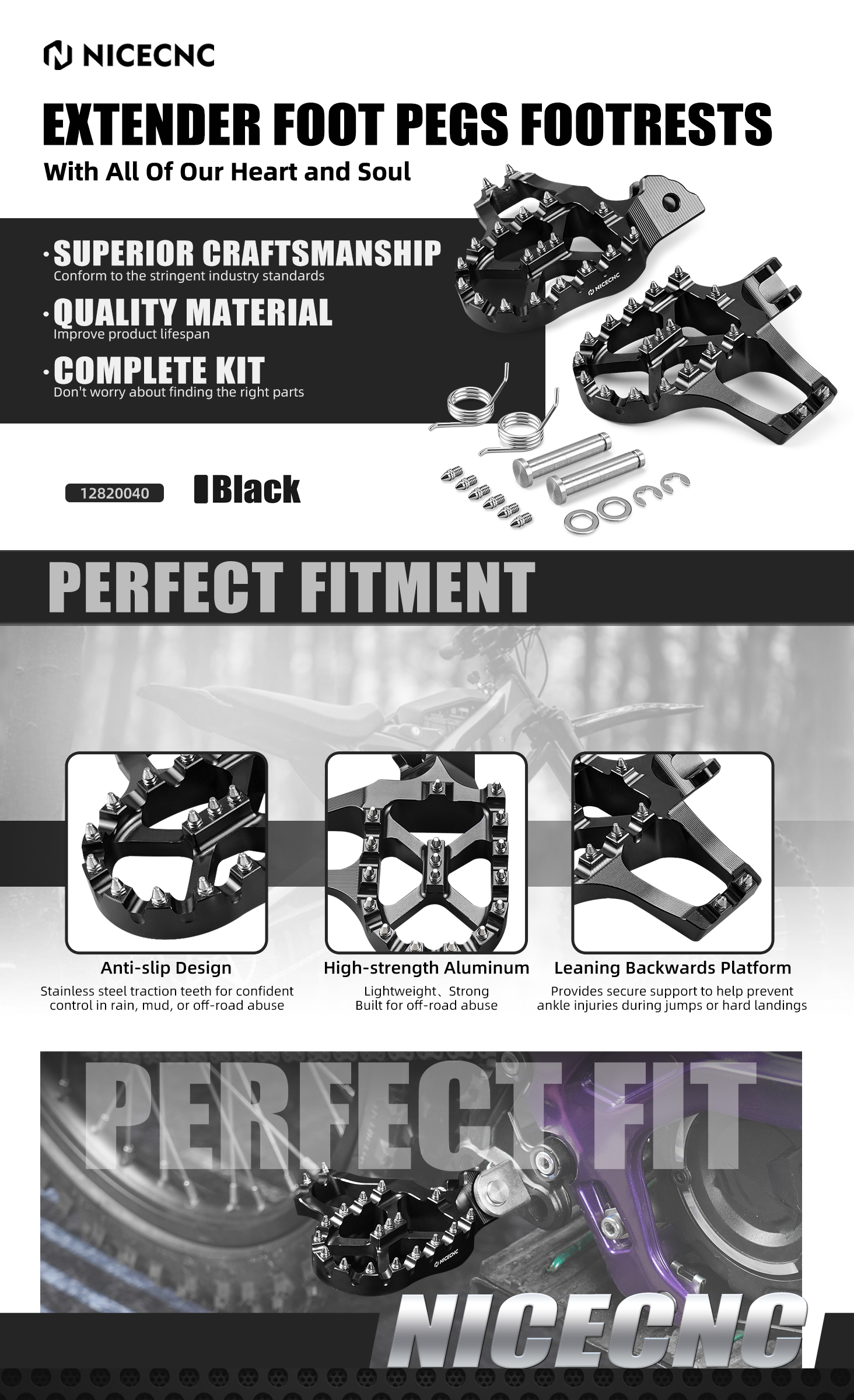 【Vergrößerte Fußplattform】Extra große Fußrastengröße: 102 mm (L) × 126 mm (B) – bietet eine breitere, stabilere Plattform für eine bessere Kontrolle des Motorrads im Stehen. Reduziert Ermüdungserscheinungen und erhöht den Komfort bei langen Fahrten.