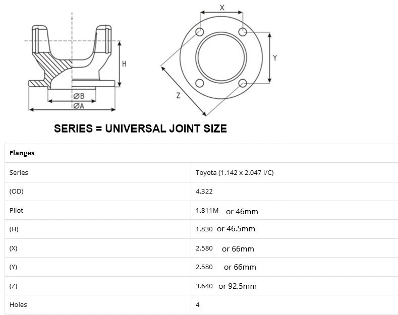 Flange Bolt Pattern (X & Y on diagram): 66mm x 66mm or 2.58" x 2.58"