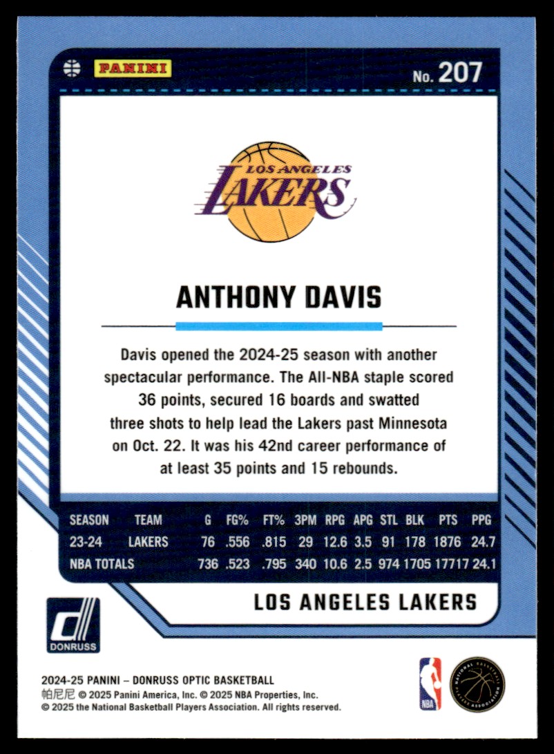| 2024-25 Donruss Optic Anthony Davis Los Angeles Lakers #207 |