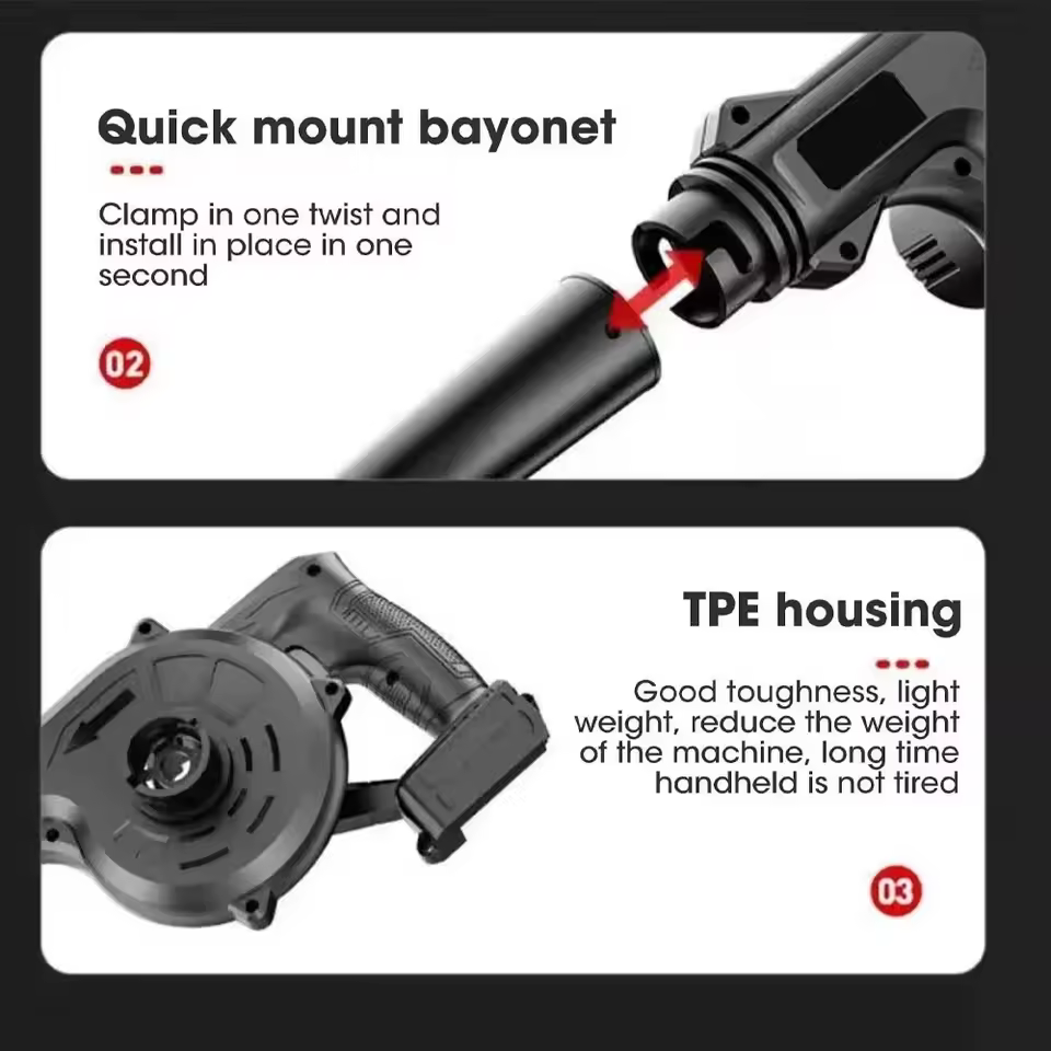 【Easy to Use as a Vacuum Cleaner】When you install the blow tube in the air inlet,put the reusable collection bag at the air outlet,the blower will become a vacuum cleaner immediately.Super strong suction allows you to absorb computer dust,pet hair,crumbled cookies,hard to clean corner and so on.