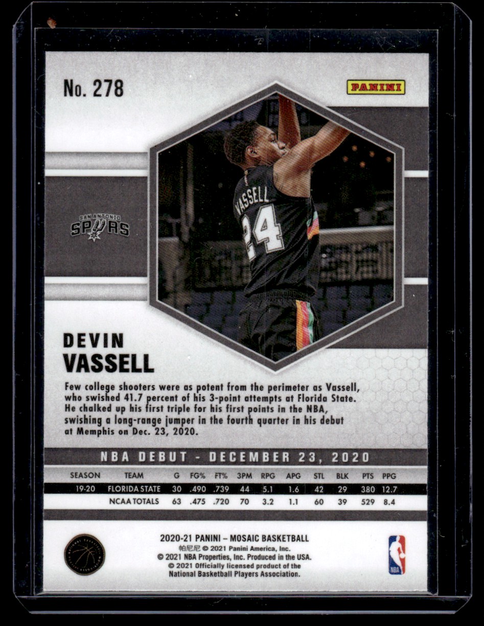 | 2020-21 Panini Mosaic Debut Devin Vassell Rookie San Antonio Spurs #278 |