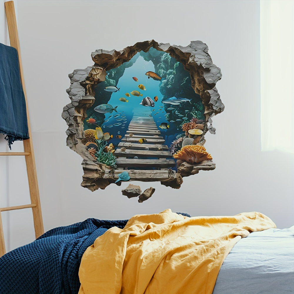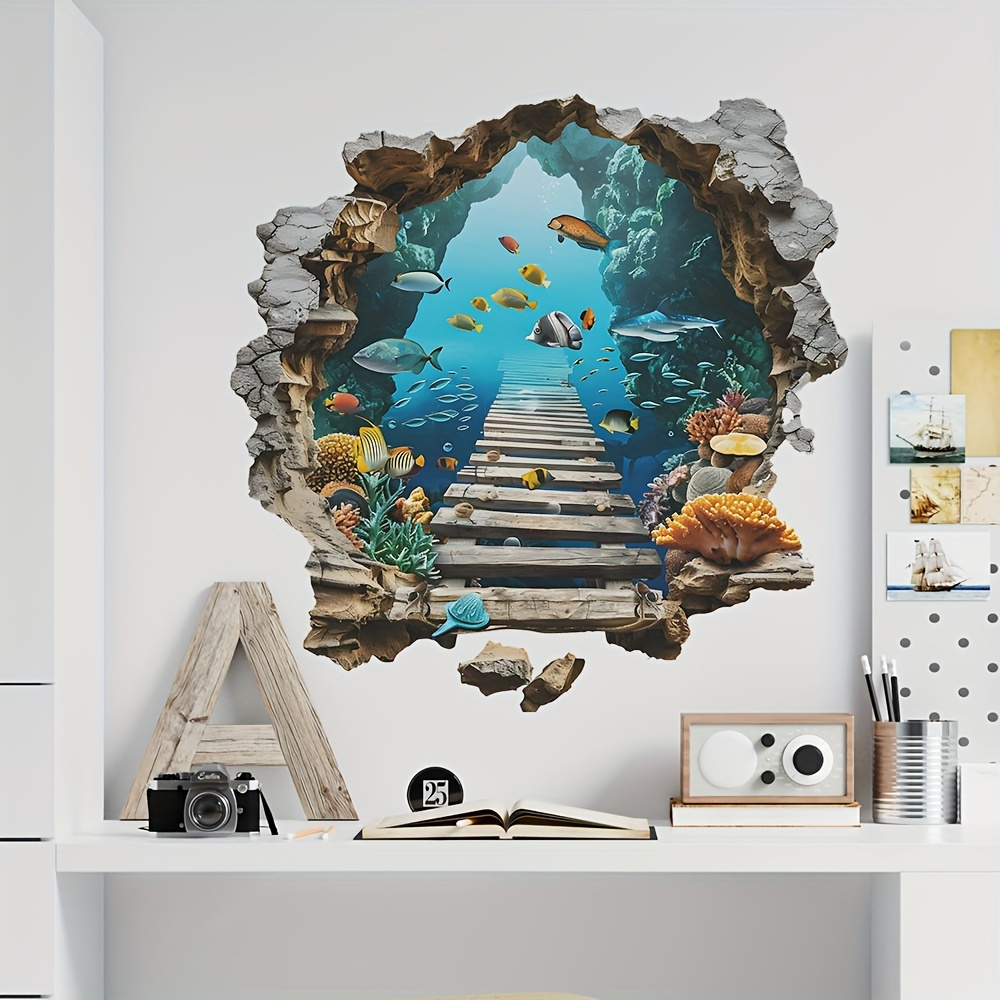 Wall Stickers 3D Sea Room Floor Decal Underwater World Fish Turtle Mural Decor