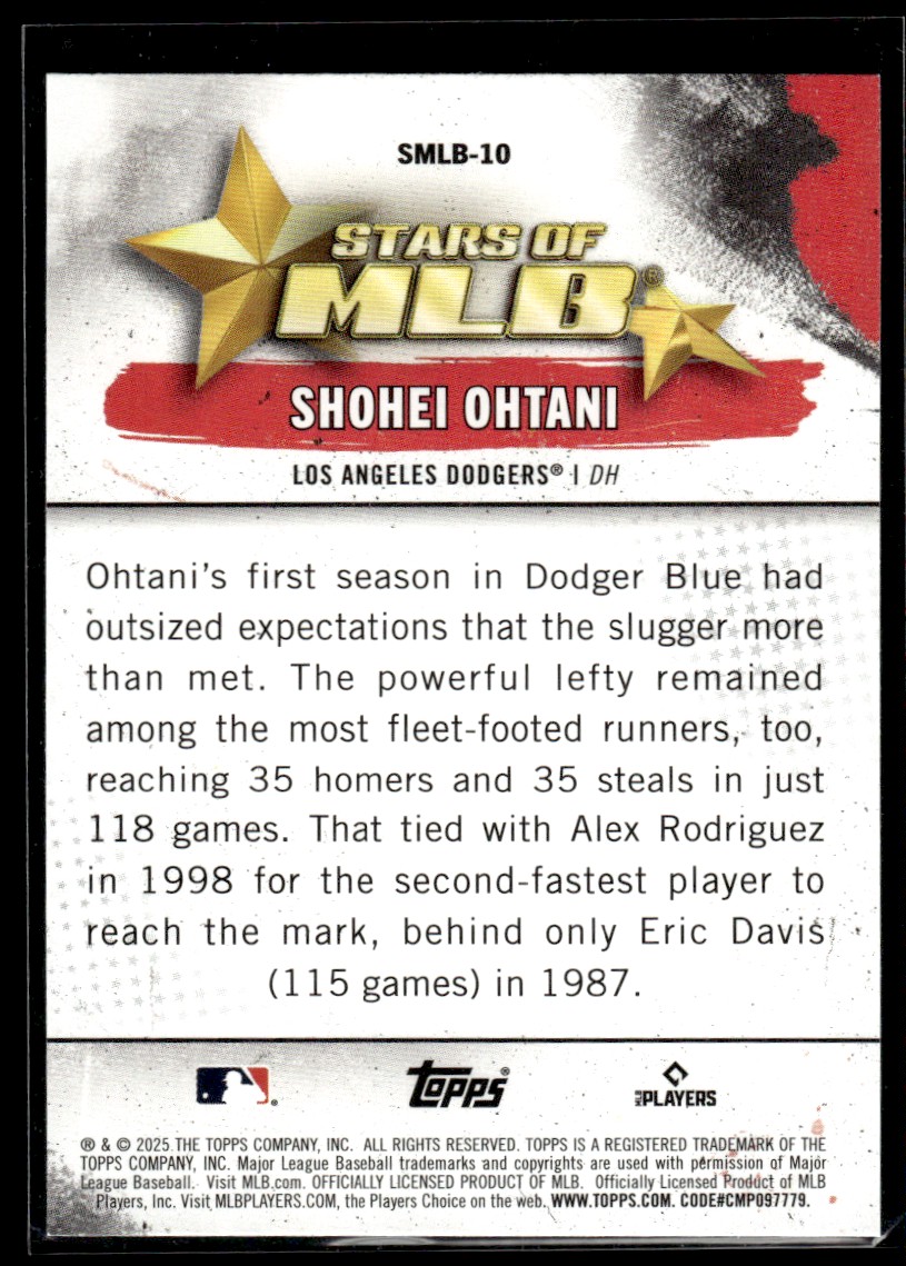 | 2025 Topps Stars of MLB Shohei Ohtani Los Angeles Dodgers #SMLB-10 |