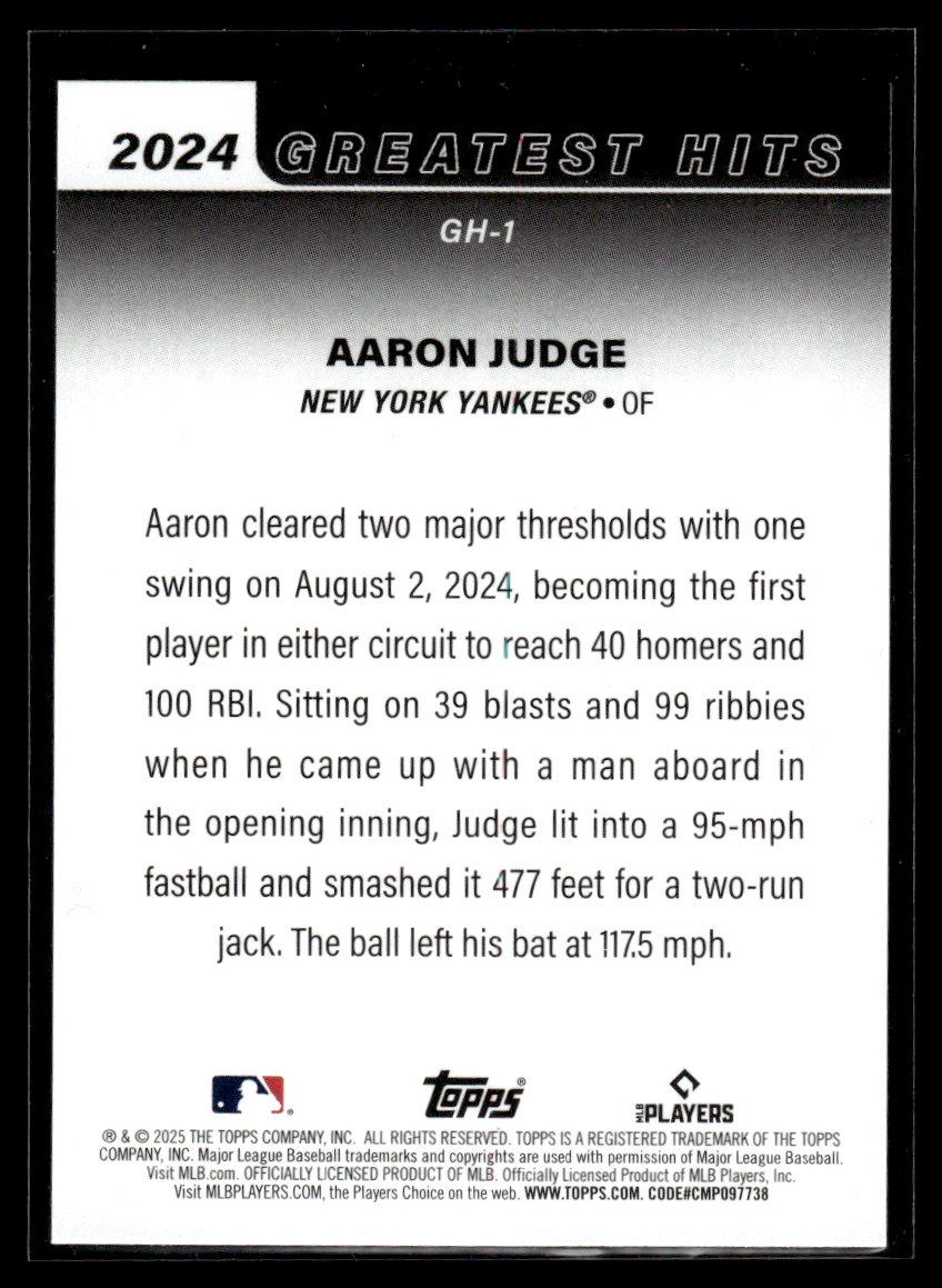 | 2025 Topps Greatest Hits Aaron Judge New York Yankees #GH-1 |