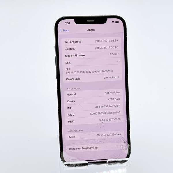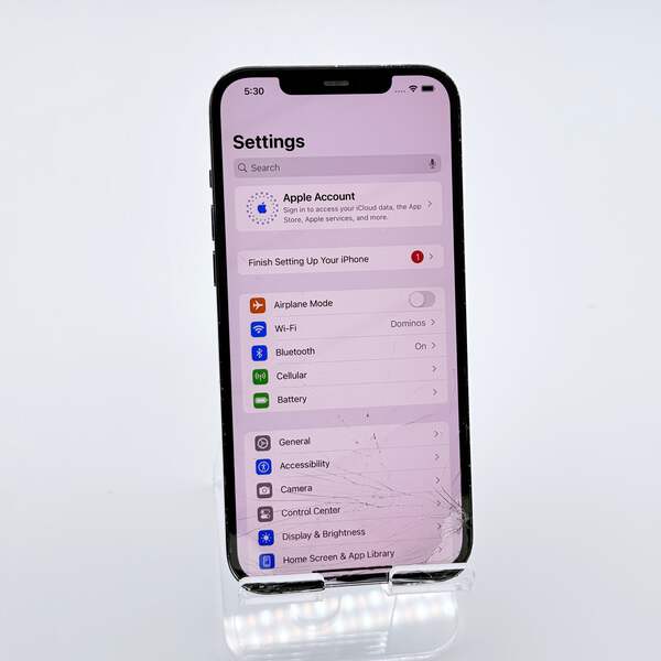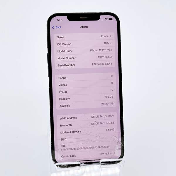 The Apple iPhone 12 Pro Max is a powerful smartphone known for its exceptional performance and stunning display. This particular unit is currently in a broken condition, featuring a cracked screen, but remains operational with all functionalities intact, including WiFi, Bluetooth, cameras, Face ID, and the charging port. The aesthetic condition shows that while the bezel has visible wear and the screen is cracked, they do not impact the device's overall functionality. The back is in great condition! This phone is ideal for someone looking for a project or for parts, as it maintains strong internal performance backed by Apple's reputation for quality. With 256GB of storage, you have ample space for your apps, photos, and videos. It's perfect for someone who may want to fix it for personal use or resale.