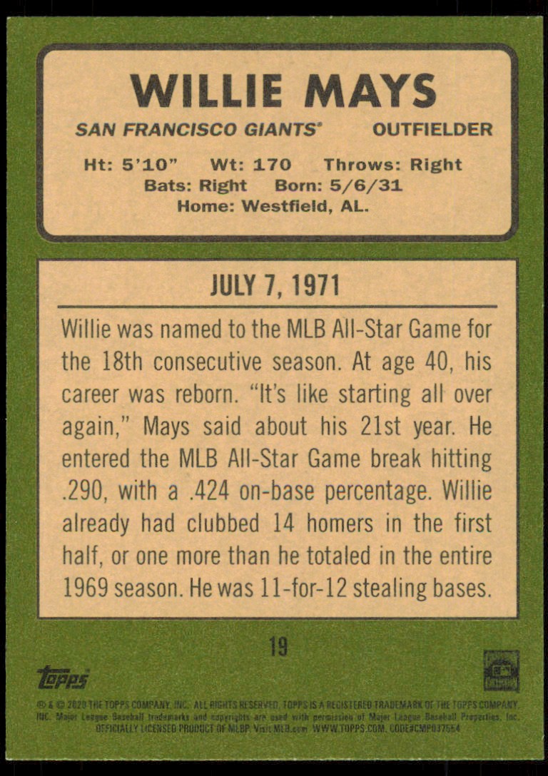 2020 Topps Heritage 20 Giants Seasons Willie Mays Candlestick Park #19