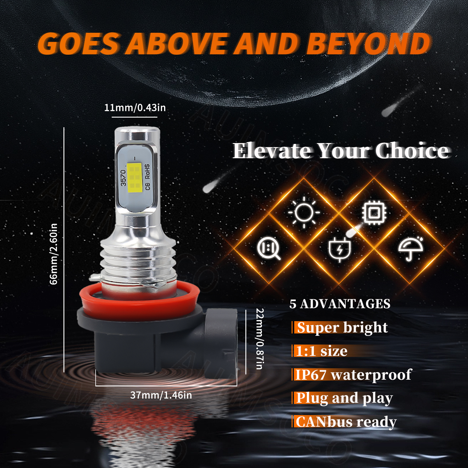 LED Quantity(each bulb): 2pcs* 3570 CSP chips