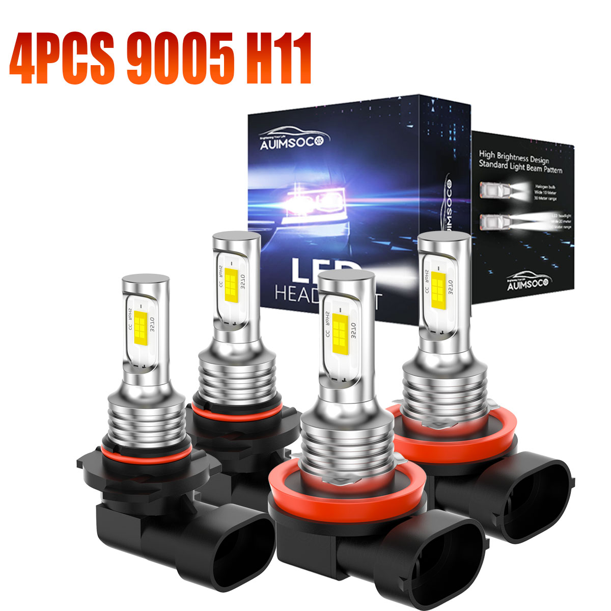 4Pcs 9005+H11 LED Headlight Bulbs