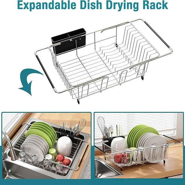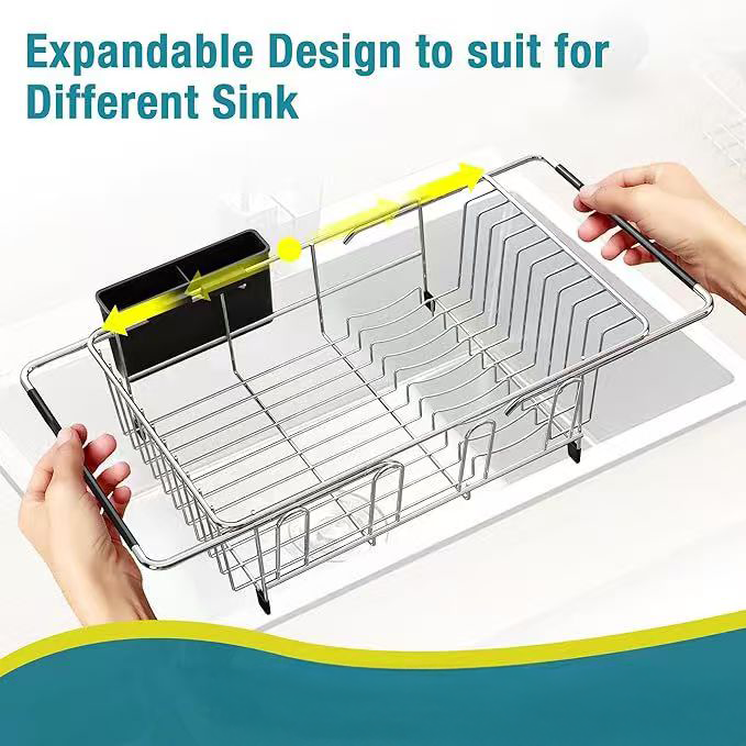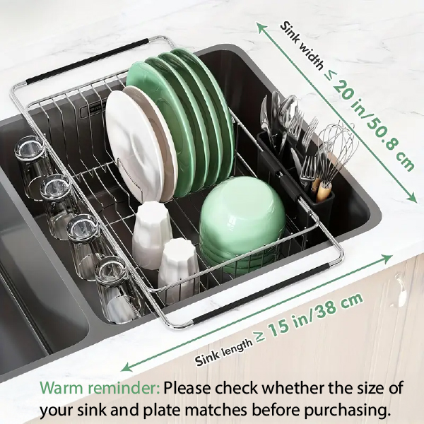 Adjustable Supporting Bars: The supporting bar of the sink drying rack can be extended from 15.5" to 23.2", This dish rack is a great space saver that fits over most sinks. (NOTE: Please check if the size of your sink and the dish rack match before purchasing.)