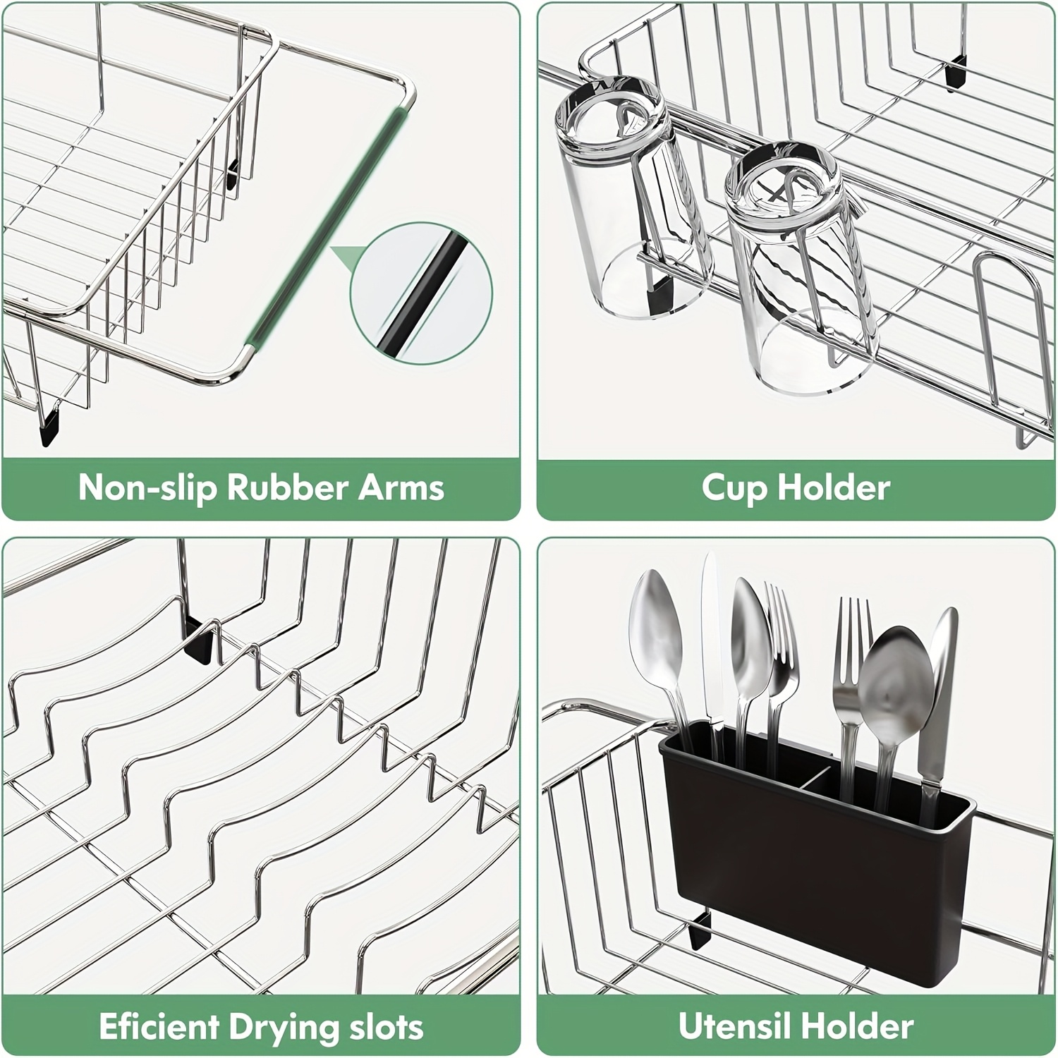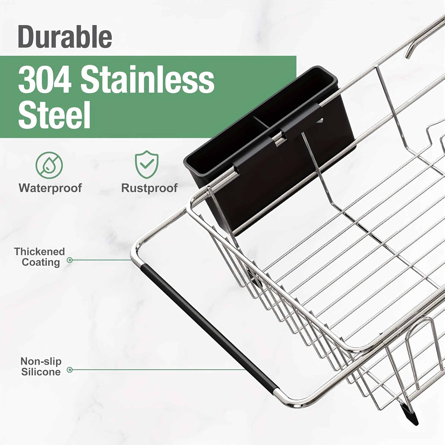 Rustproof & Long Lasting: To prevent rust on the dish racks, this kitchen drying rack is made of food-grade Stainless Steel and constructed of thickened tube pipes, Stable and High Load Bearing