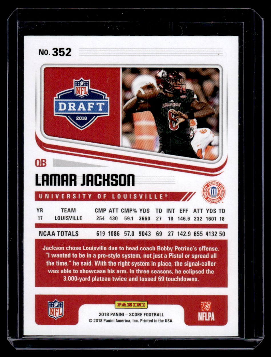 | 2018 Score Lamar Jackson Rookie Louisville Cardinals #352 |