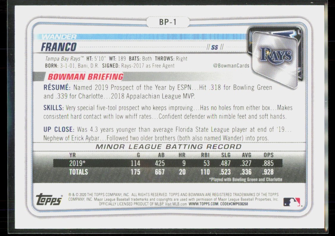 2020 Bowman Prospects Sky Blue Wander Franco /499 #BP-1