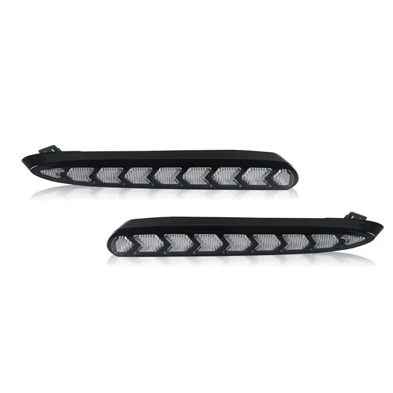 It will keep white color lights on as daytime running lights, and it will change to amber yellow flashing when you turn left or right, when the headlights are turned on at night, the white lights switch to blue