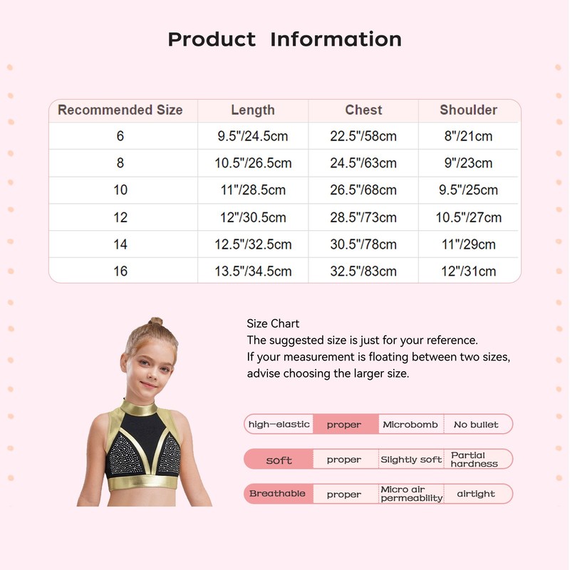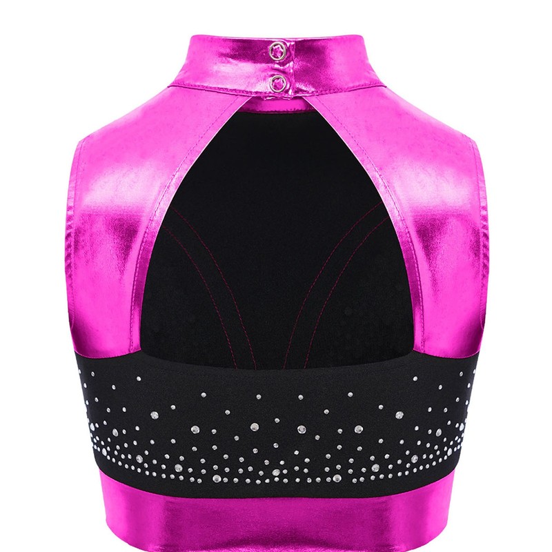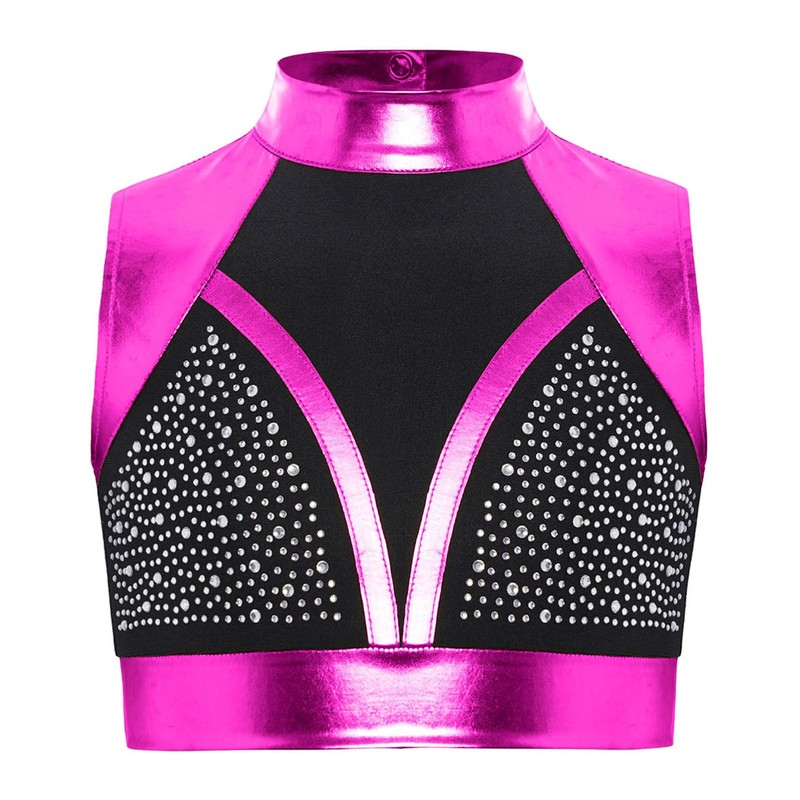 Color-block and metallic finish with shiny rhinestones bring a glamorous and sparkling effect, perfect for standing out on the dance stage.