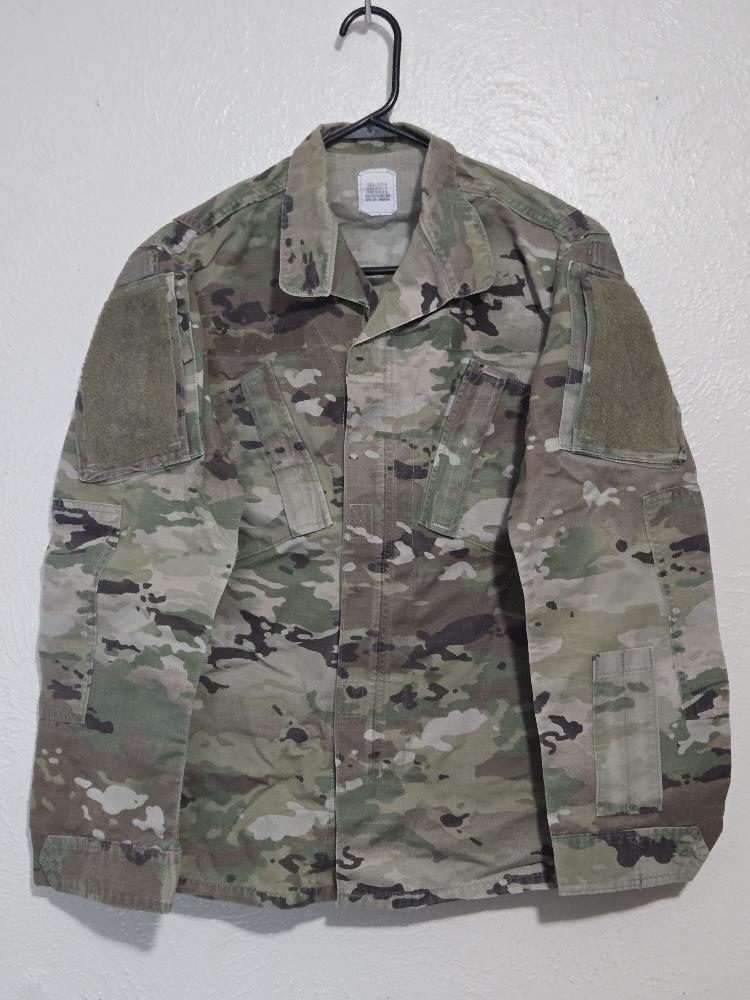 Genuine U.S. Army OCP (Operational Camouflage Pattern) Combat Uniform Jacket, size Small Regular, NSN 8415-01-623-5180.