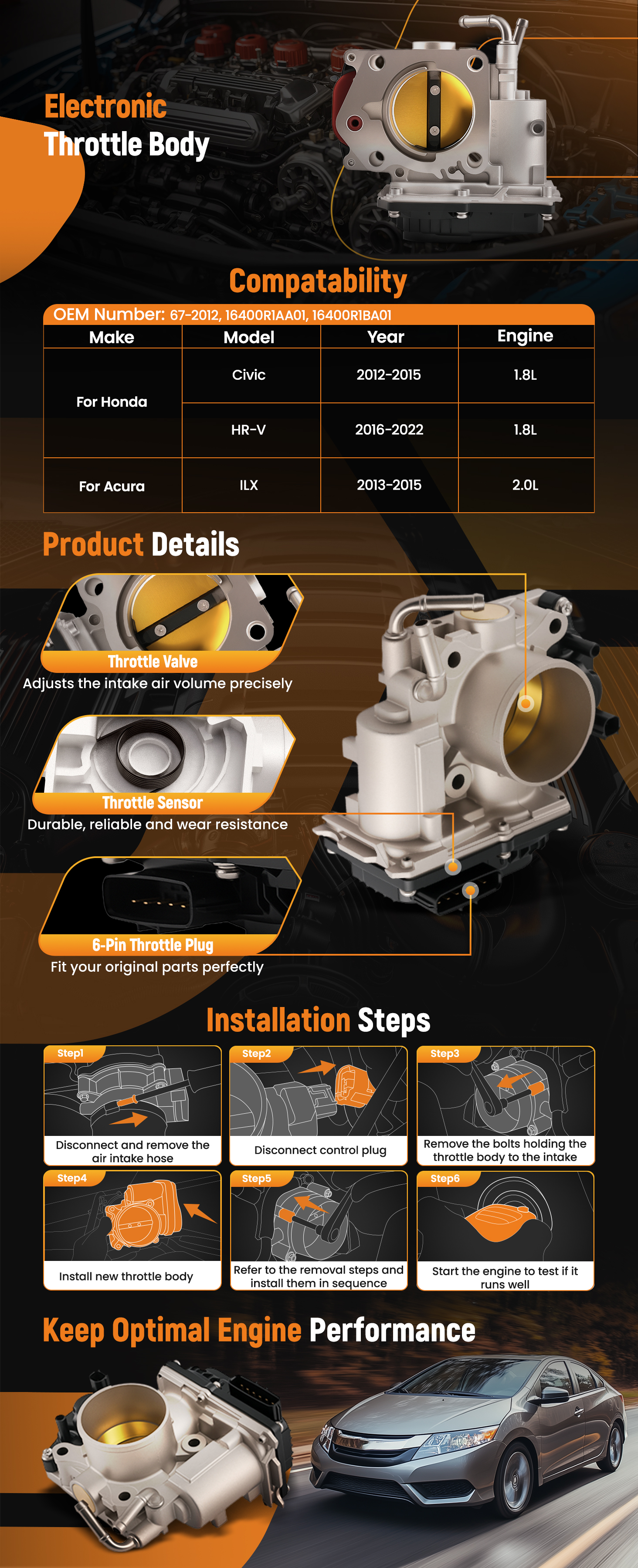 Designed for Faster Response, this Throttle Body significantly improves acceleration, providing a smoother and more responsive driving experience.