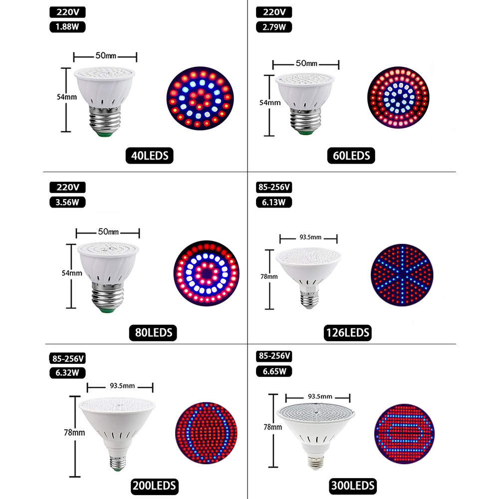 LED Plant Grow Light Bulb E26 E27 E14 MR16 GU10 B22 48LEDs-300LEDs SMD2835 Plant Light for Flowers Vegetables Greenhouse Hydroponic Growing
