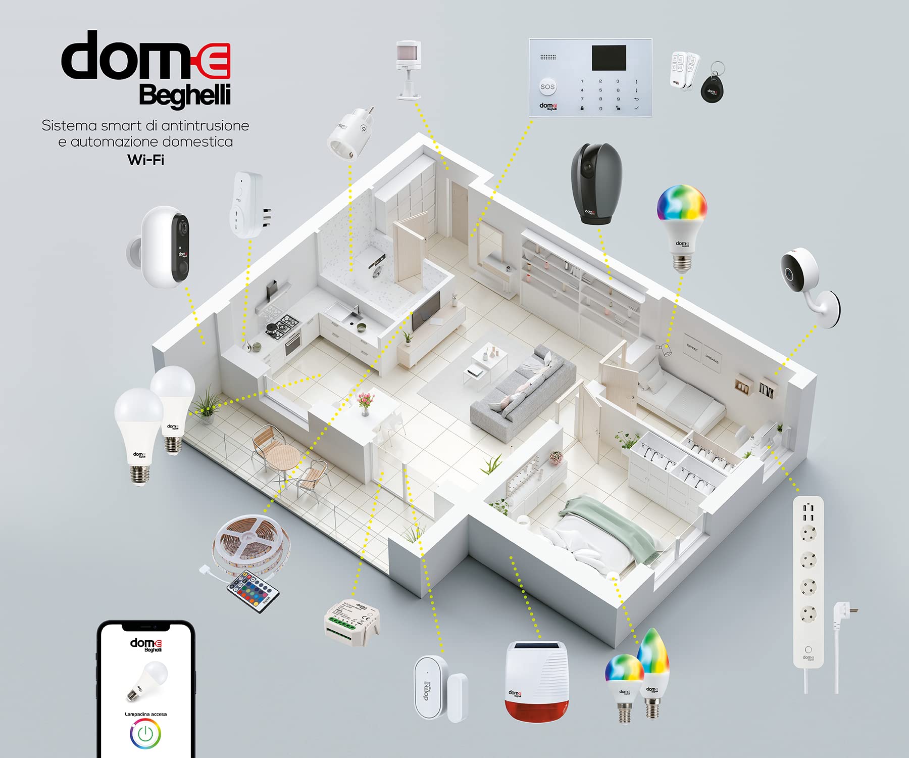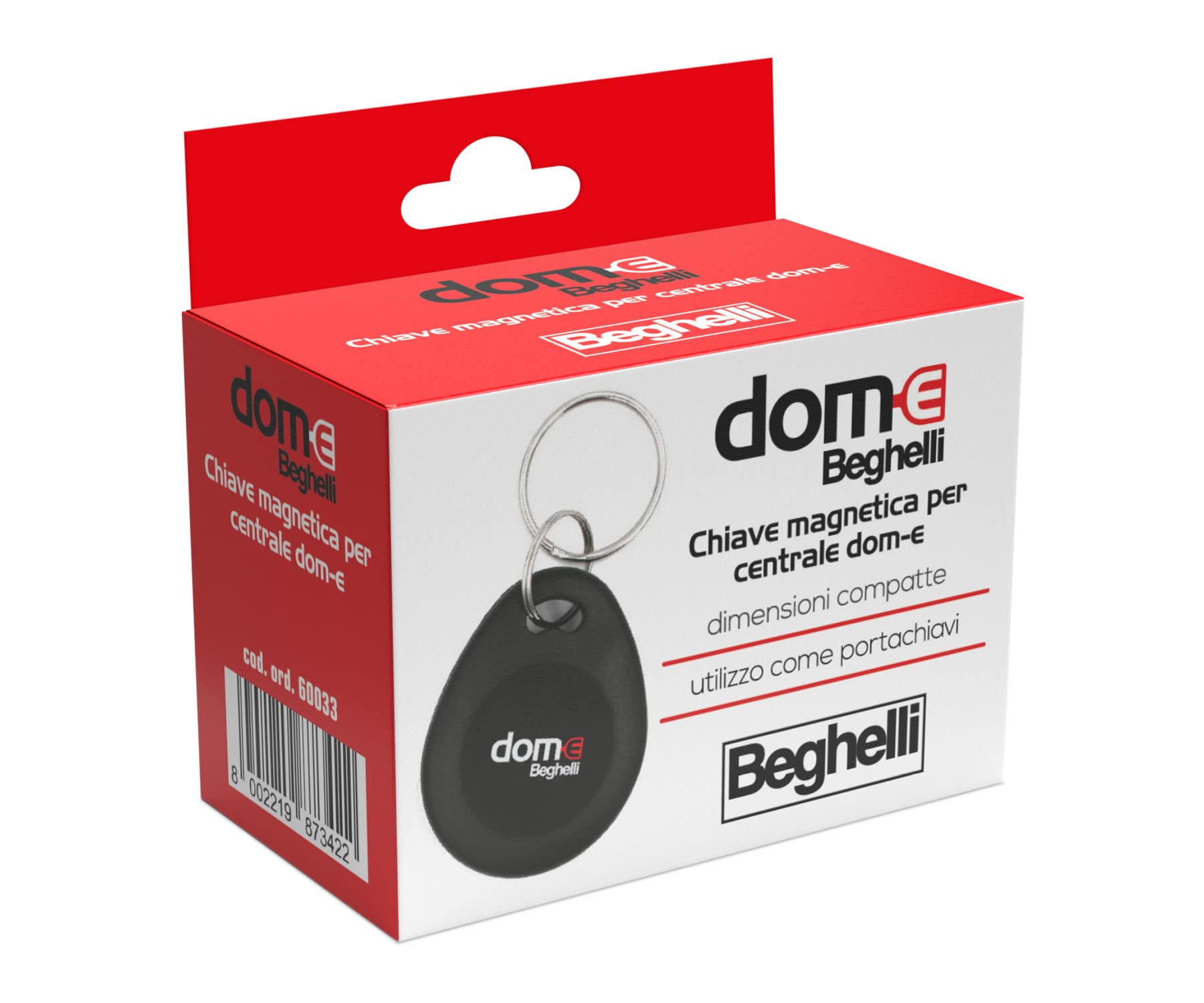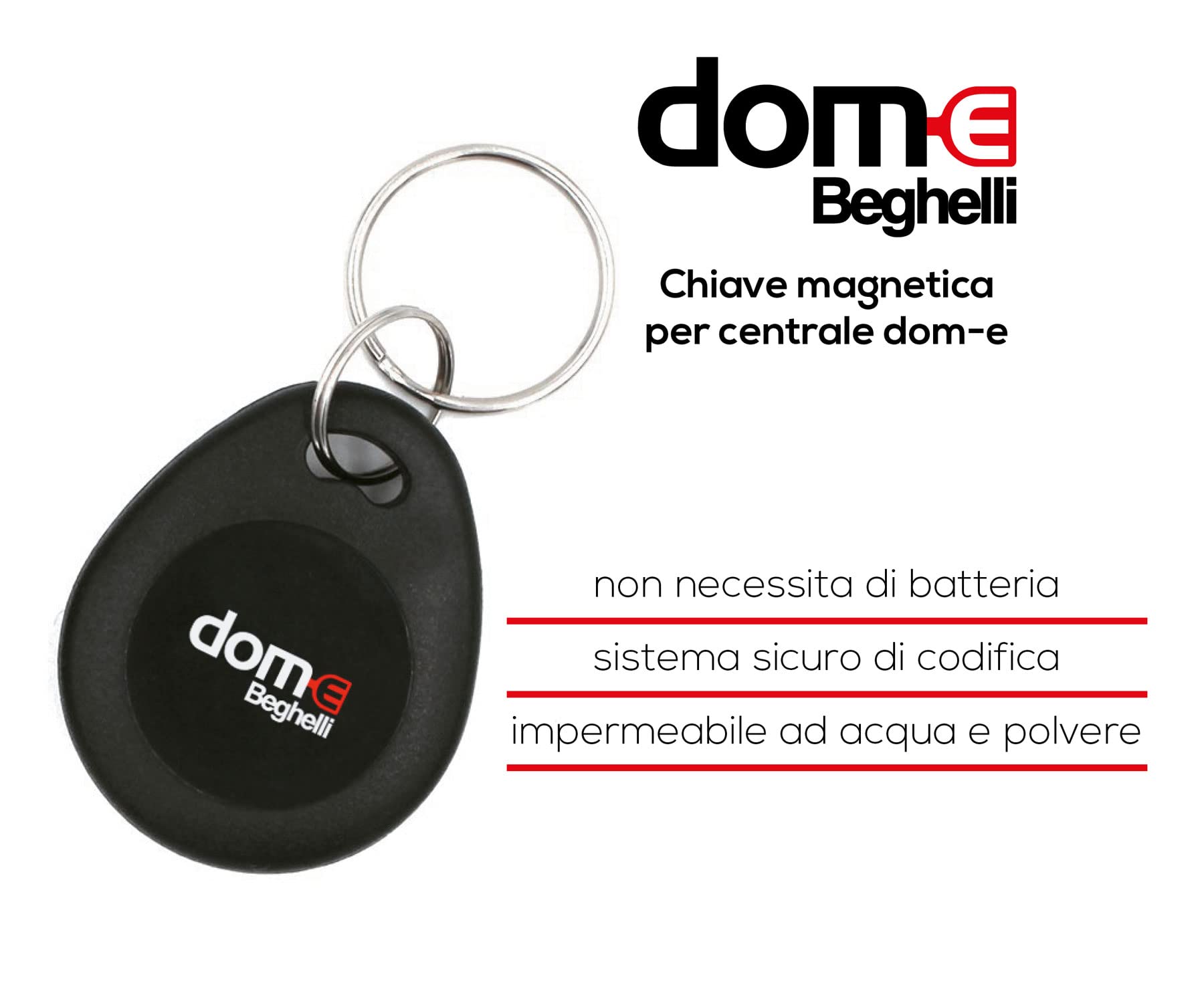 Beghelli - Chiave Magnetica Dom-e Antifurto per Sistema Allarme Casa, Senza Fili, Domotica Intelligente, No Batteria, Impermeabile, Accessorio Aggiuntivo Centrale, Portachiavi compatto