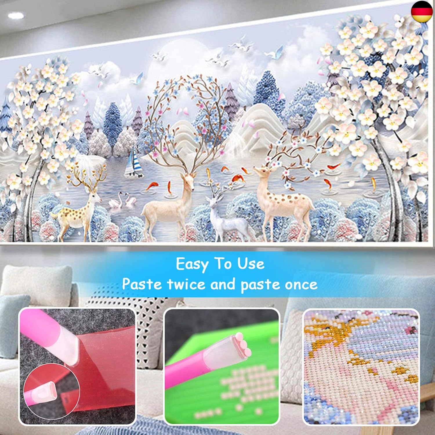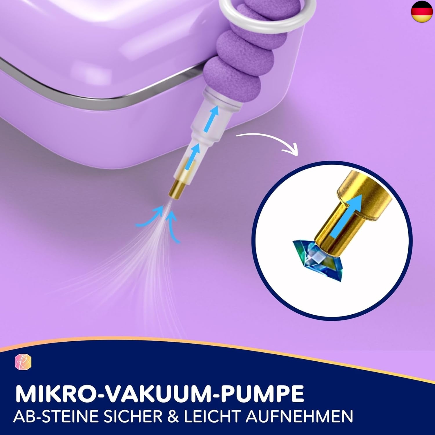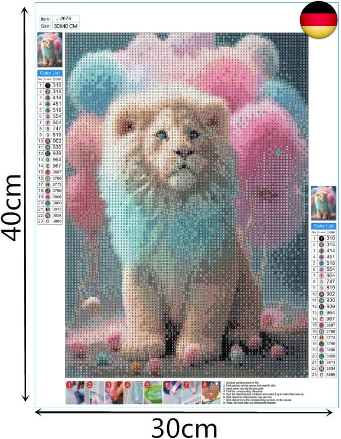 Einfach zu malen Dank HD-Leinwand und MEHRFACH-Werkzeug Der Prozess ist ganz einfach dank den Klaren Symbolen auf HOCHKLARE Drucköl-Leinwand und MEHRFACH-Werkzeug ,welche in unserem Zubehör-Bereich inklusive ist! Man kann damit 3/6 Diamantsteinen auf einmal aufnehmen und in einer gerade Linie auf der Leinwand positionieren. Dies beschleunigt das Befüllen großer Farbblöcke. Wir haben auch PINZETTE für Sie,damit Man einen falsch platzierten Diamantstein leicht wieder entfernen kann