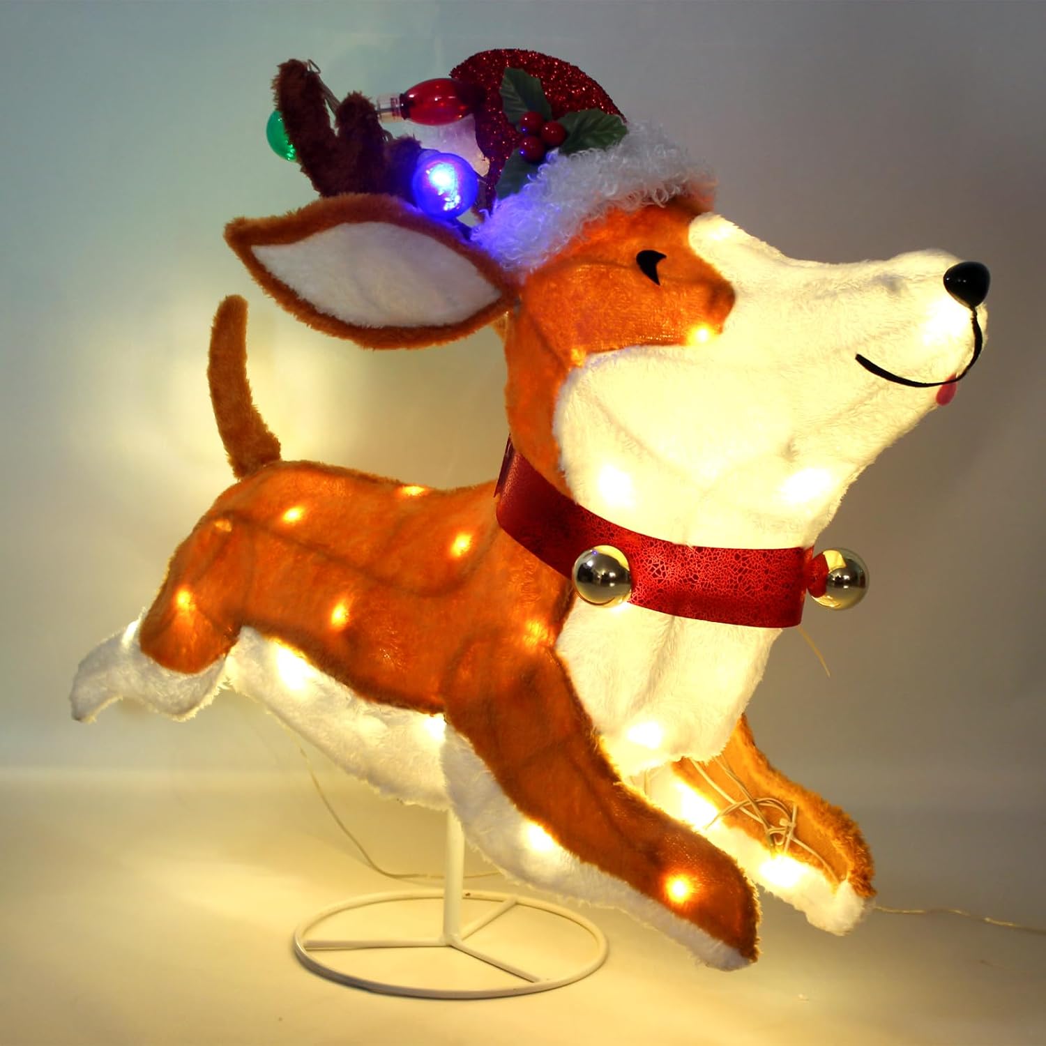 28” Christmas Dog Lighted Decoration for Indoor Outdoor,Corgi Dog Display with LED Lights, Christmas Puppy Lighted-up Decor