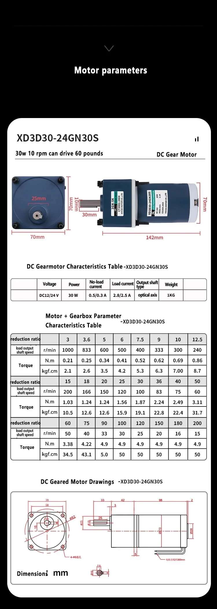 30W motor 12V24V small DC motor gear reducer low speed forward and reverse micro adjustable speed