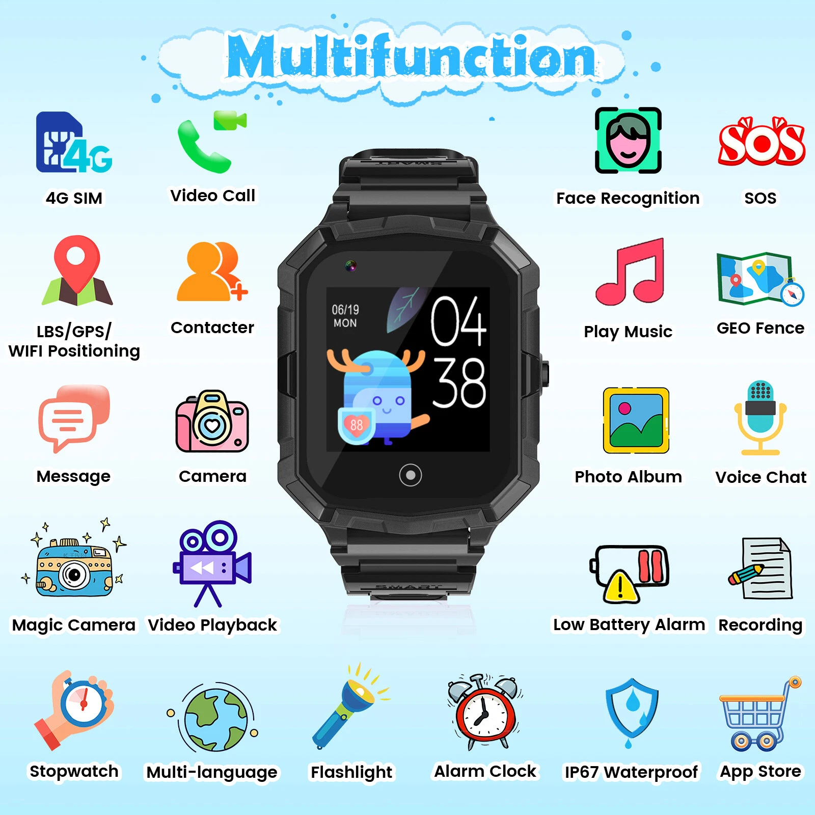 Multiple Functions - Without A SIM Card, Enjoy Features Like A Magic Camera, Gallery, Bluetooth, And Math Games. Connect The App And Insert A SIM For Calls, Video Calls, Messaging, And More. IP67 Waterproof And Multilingual, It's Perfect For Kids Aged 3-15.
