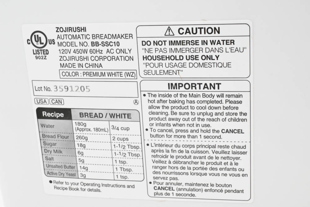 Zojirushi Maestro BB-SSC10 Breadmaker