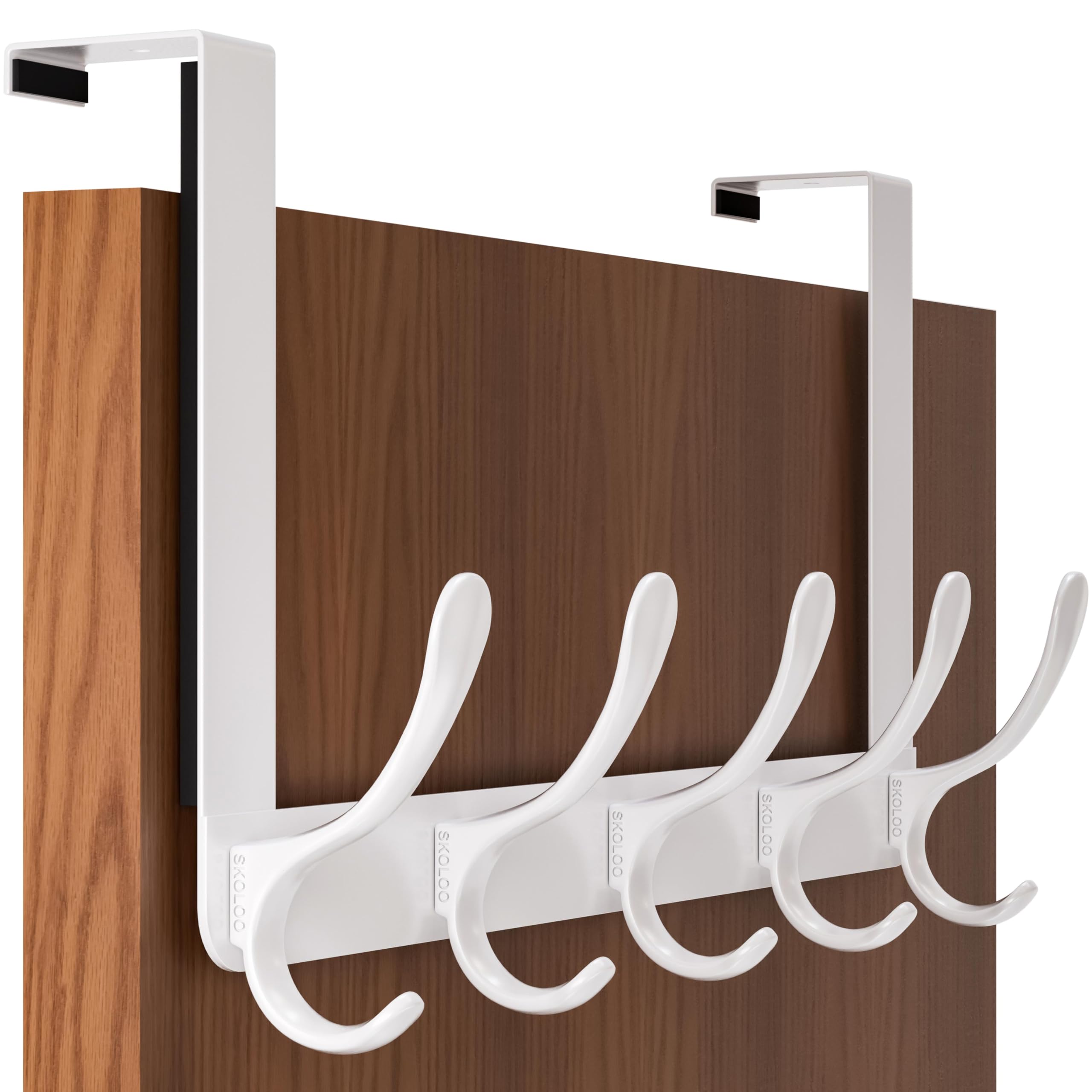 The SKOLOO Over Door Hook is a versatile, modern solution for hanging clothes, towels, coats, and more, offering a sleek white finish with matte black and silver accents. With its sturdy metal construction and 30-pound load capacity, it ensures reliable support while saving space in your bathroom or closet.