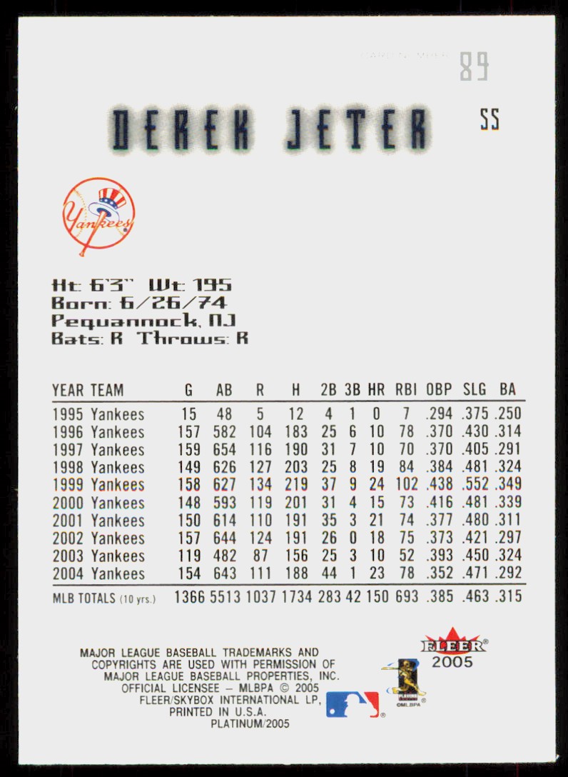 2005 Fleer Platinum Derek Jeter New York Yankees #89