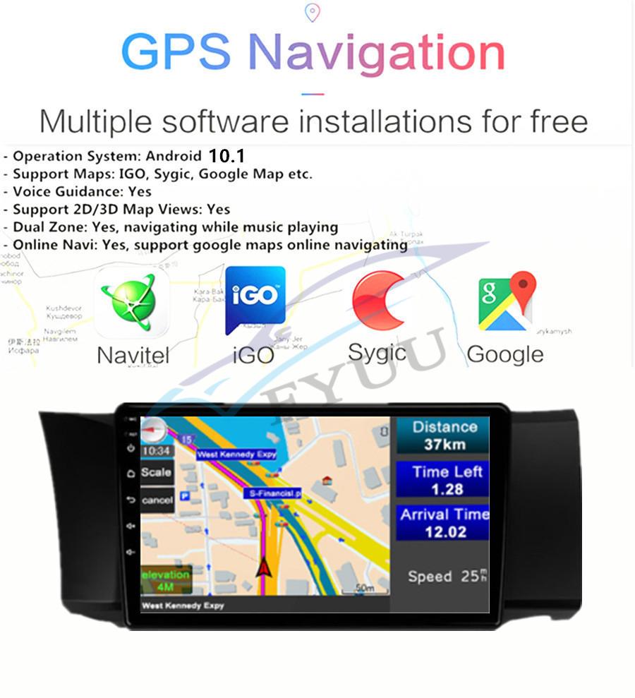 GPS | - Operation System: Android 10.1 - Support Maps: IGO, Sygic, Google Map etc. - Voice Guidance: Yes - Support 2D/3D Map Views: Yes - Dual Zone: Yes, navigating while music playing - Online Navi: Yes, support google maps online navigating |