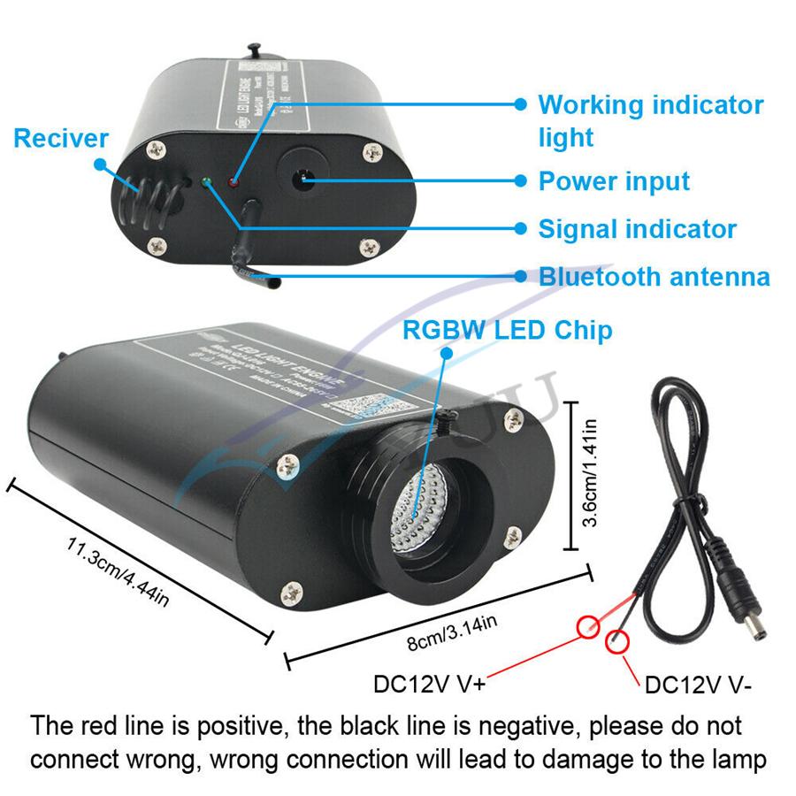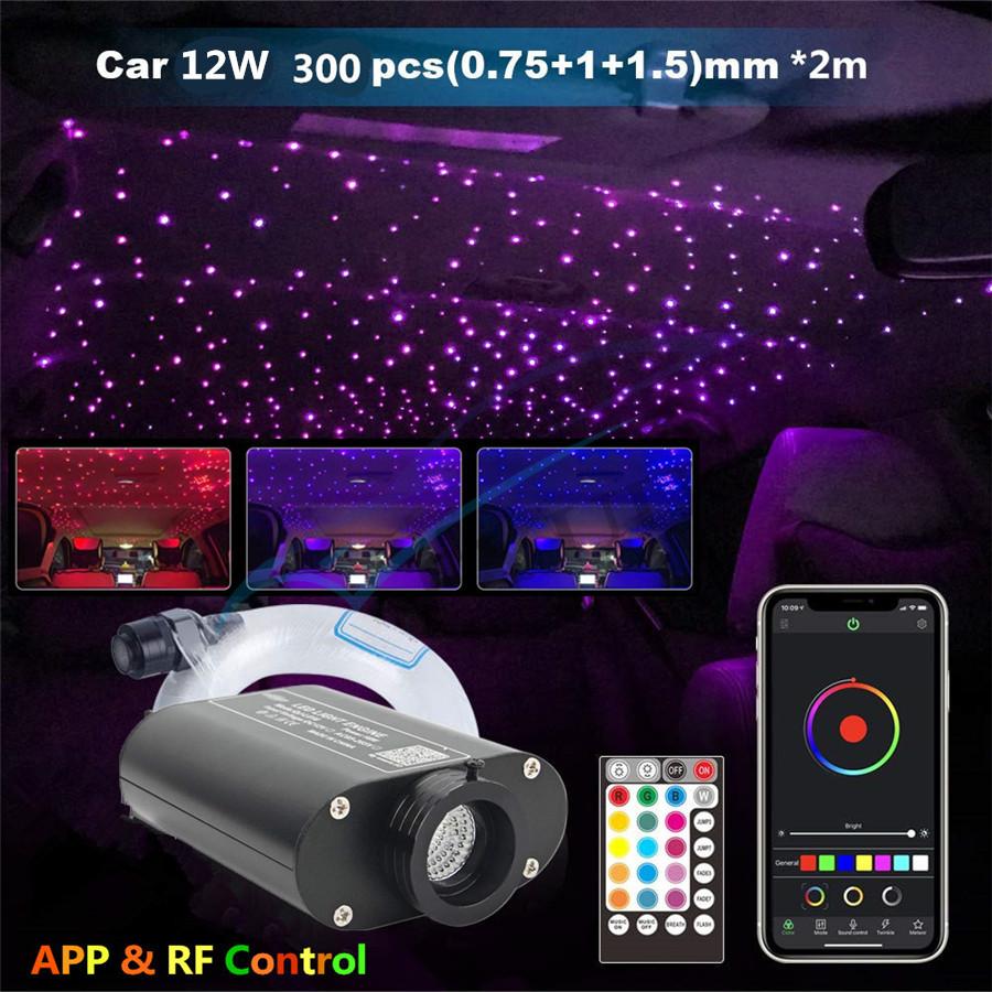 APP Music Control 12V Car 300 Pcs 2M LED RGB Fiber Optic Light Star Ceiling Kit