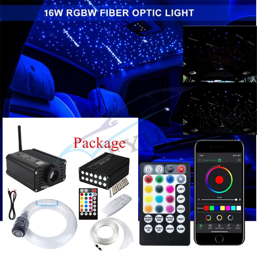 16W RGBW Car Interior Roof Fiber Optic Star Starry Lamp RF APP BT Sound Control