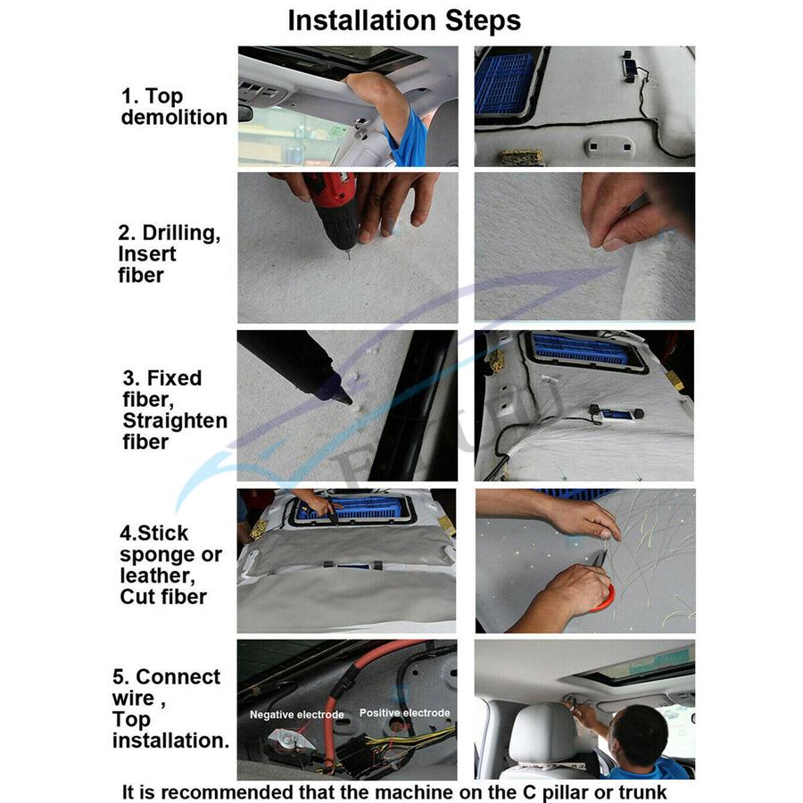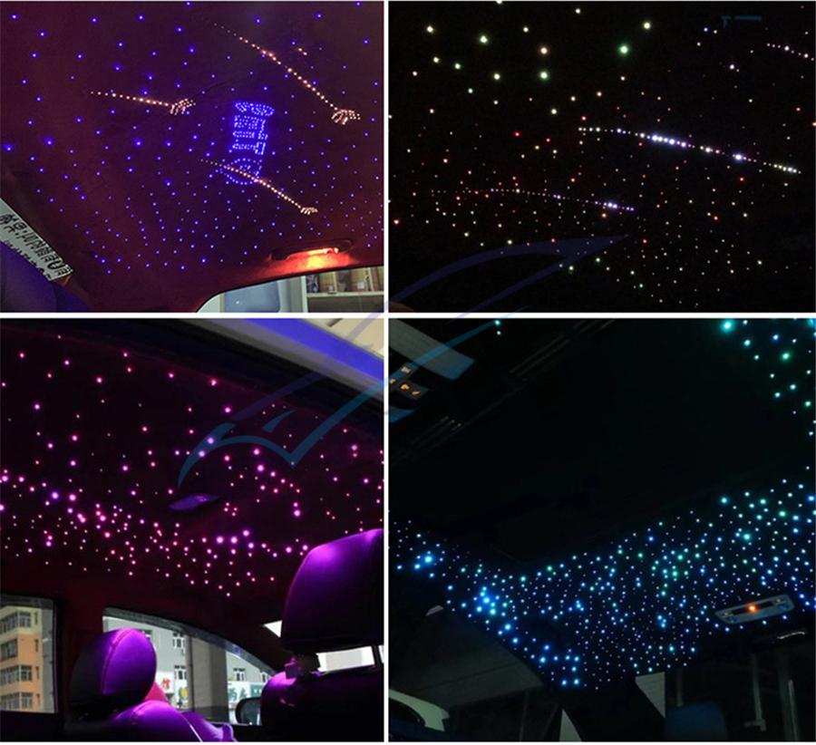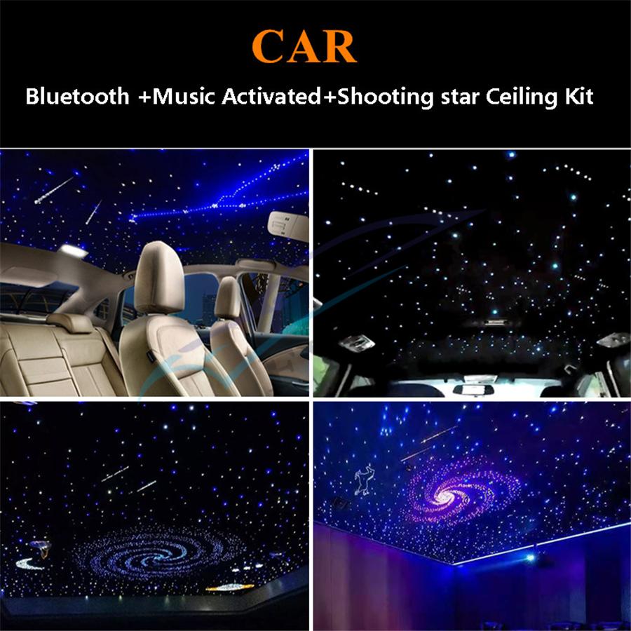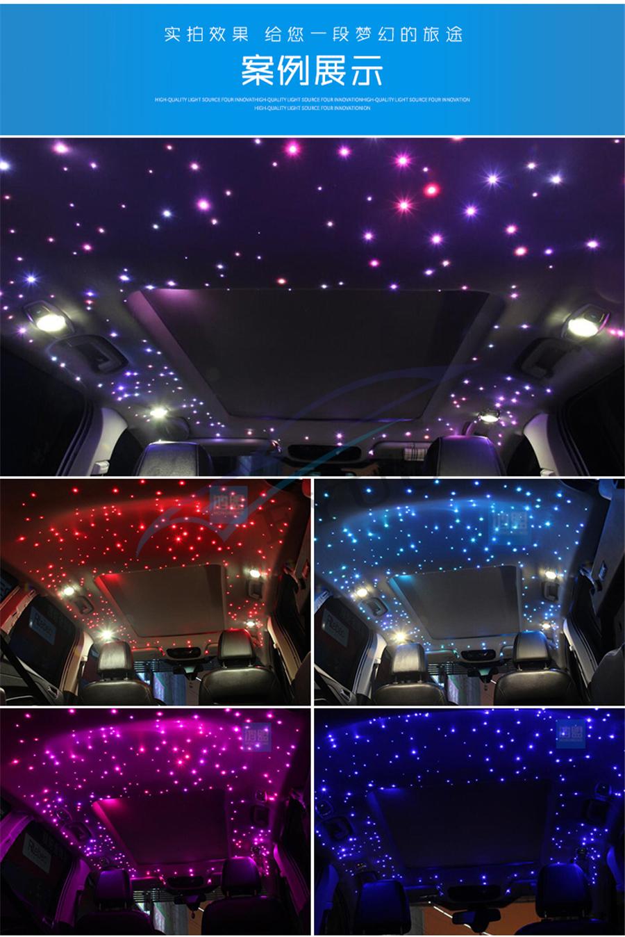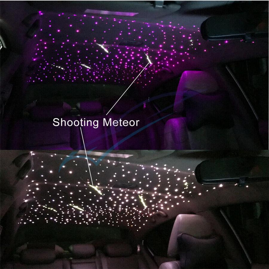 Item Detail: Fiber optic cable include: 2meters(0.75mm*300pcs)(star cable) Weight: 2.2kg Features : 1.Ceiling star with meteor can make your car romantic and unique, comparable to the top luxury cars, but requires some practical ability. 2.DC12V,Suitable for car,Have Music mode & Bluetooth control,28-key multi-function remote control, easy to use.(Meteor:RF&Sound Control ) 3.It uses RGBW lamp beads, have pure white, the most suitable for the stars. 4.High brightness, energy saving, long use life.Machine 2-year warranty, the seller bear the freight. 5.Musci control , Bluetooth APP control,RF remote controller.(Meteor effect: RF&Sound Control) Package included :