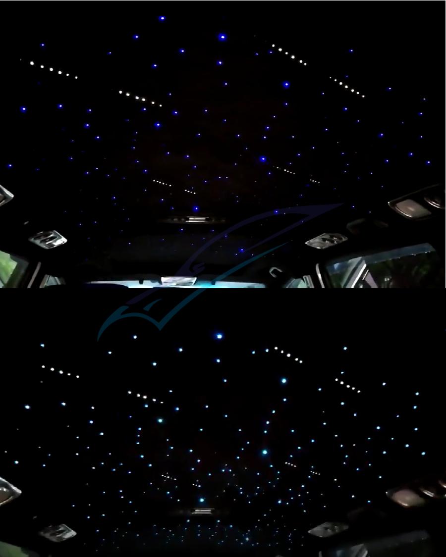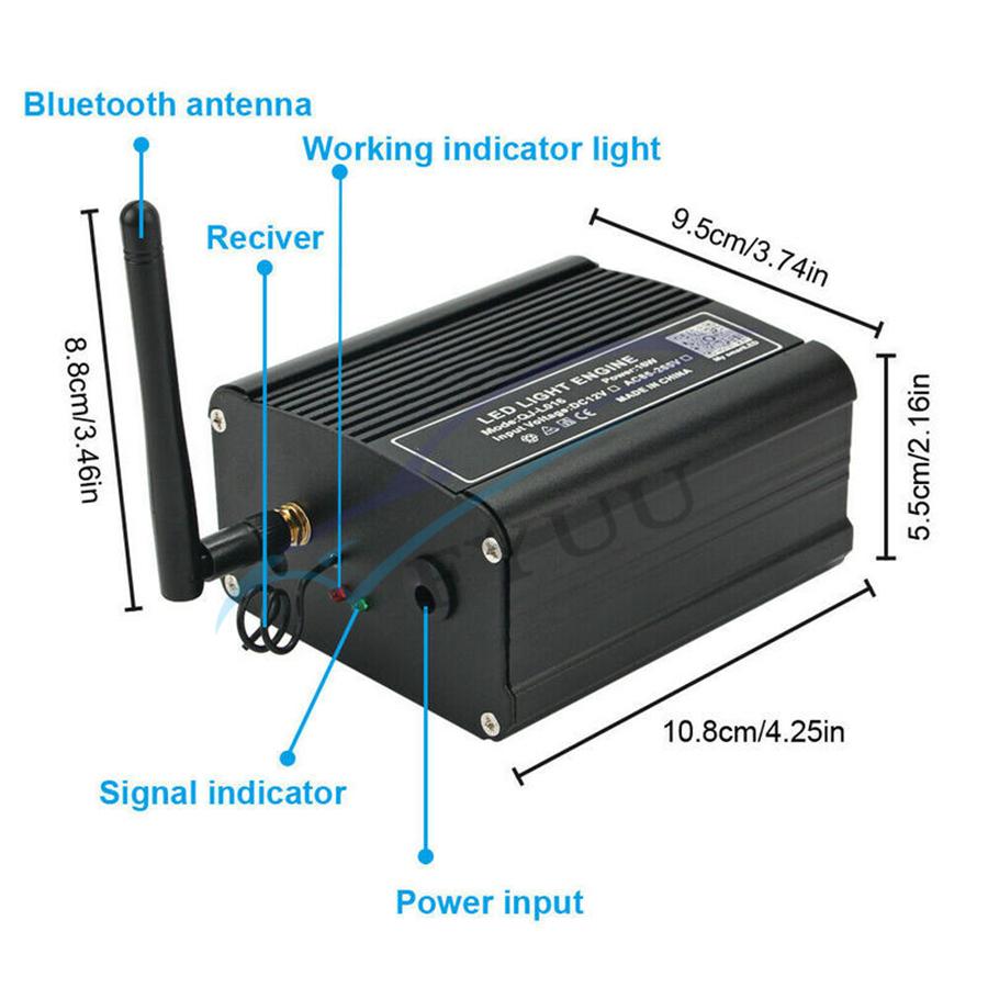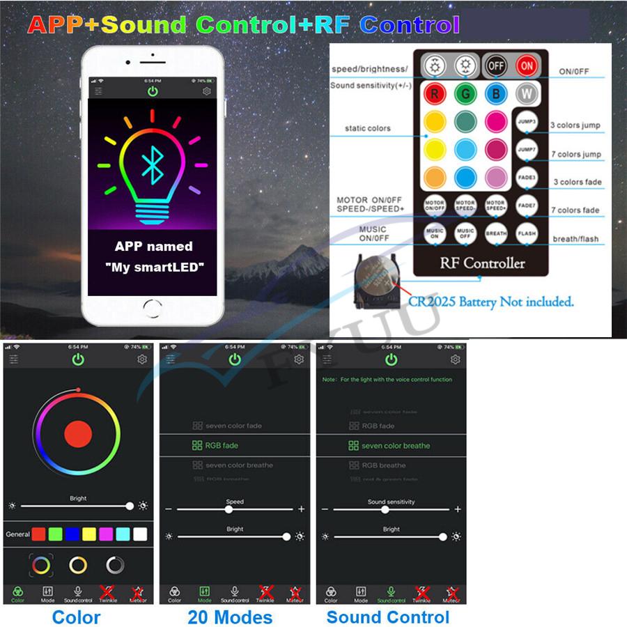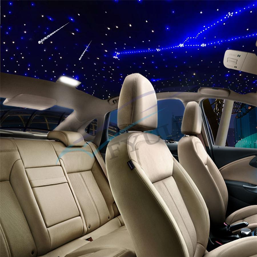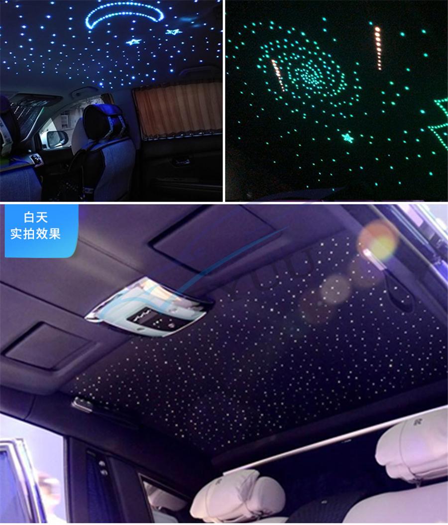 Item Detail: Fiber optic cable include: 2meters(0.75mm*300pcs)(star cable) Weight: 2.2kg Features : 1.Ceiling star with meteor can make your car romantic and unique, comparable to the top luxury cars, but requires some practical ability. 2.DC12V,Suitable for car,Have Music mode & Bluetooth control,28-key multi-function remote control, easy to use.(Meteor:RF&Sound Control ) 3.It uses RGBW lamp beads, have pure white, the most suitable for the stars. 4.High brightness, energy saving, long use life.Machine 2-year warranty, the seller bear the freight. 5.Musci control , Bluetooth APP control,RF remote controller.(Meteor effect: RF&Sound Control) Package included :