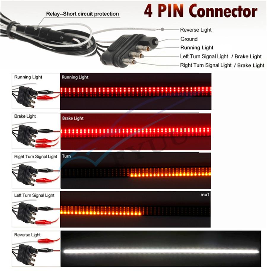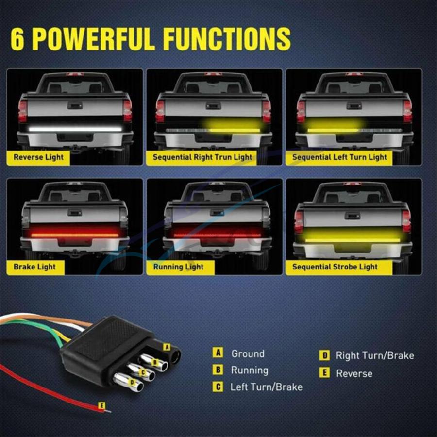 2、5-Functions & 3 Light Colors: Features full functions of brake(High red), turn signal(Flowing amber),running tail Light(Low red), reverse(White) and strobe light(Flowing amber).
