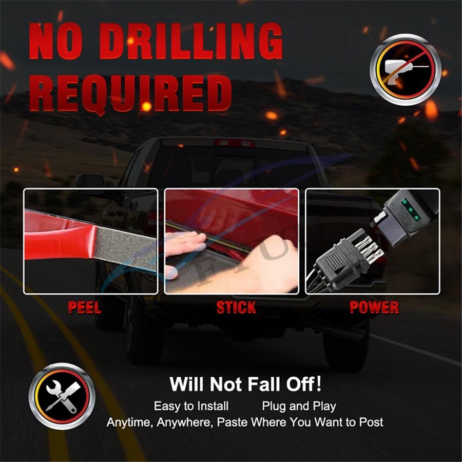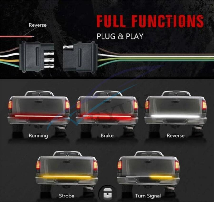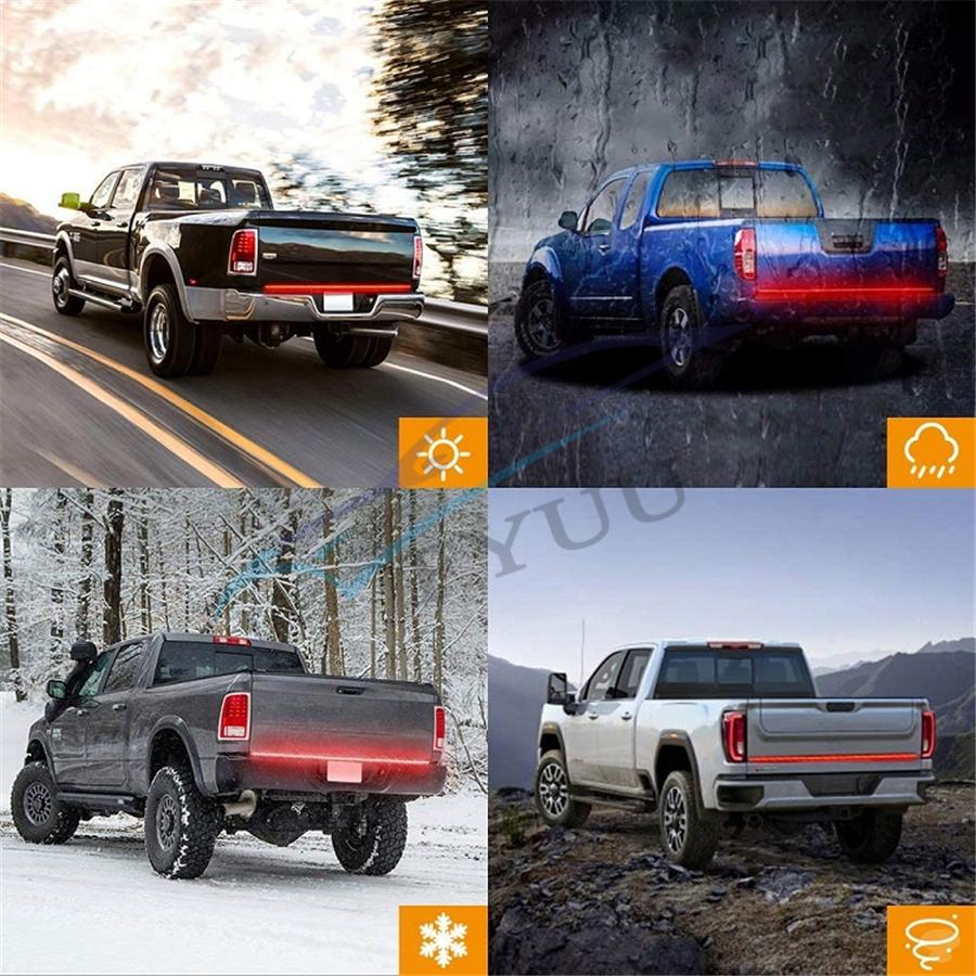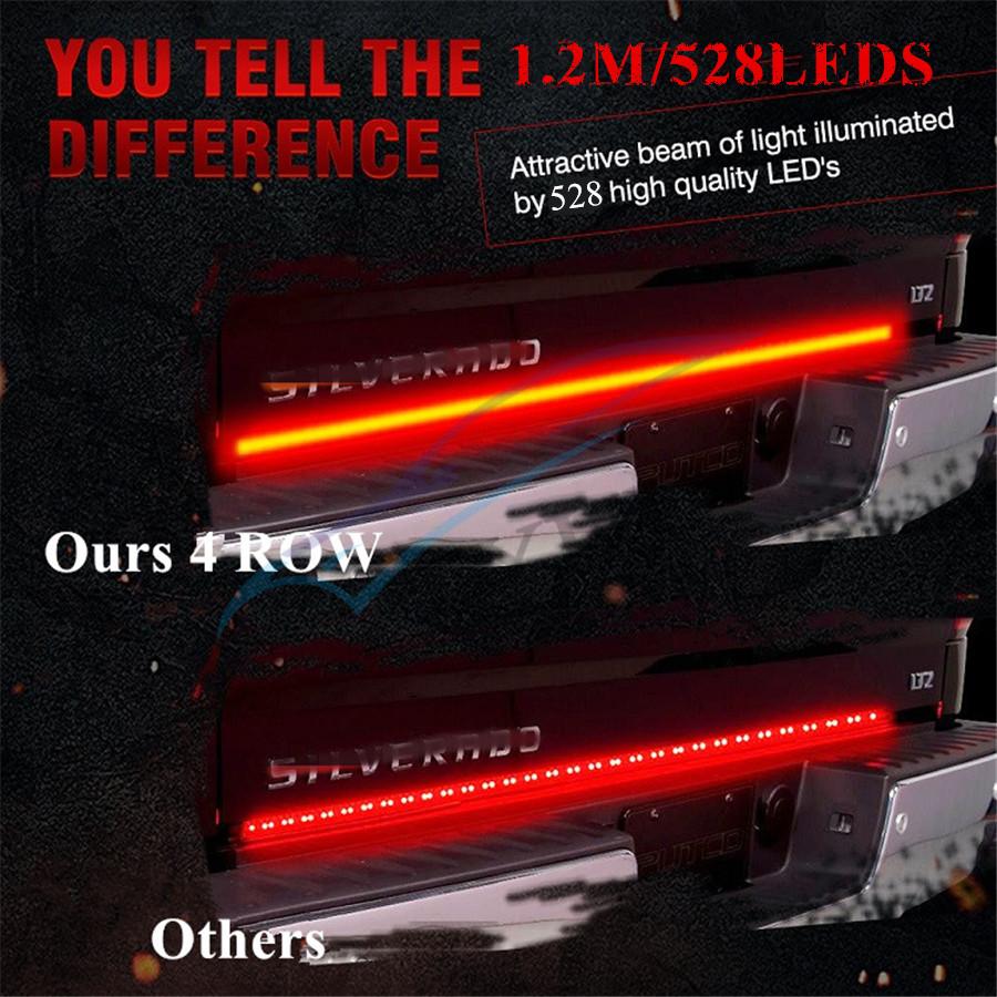 1、Super Bright: 49inch fourth row tailgate light bar which is 300% brighter than other single row 、triple rows light strip, effectively reminding the vehicles behind you. Make you driving safer.