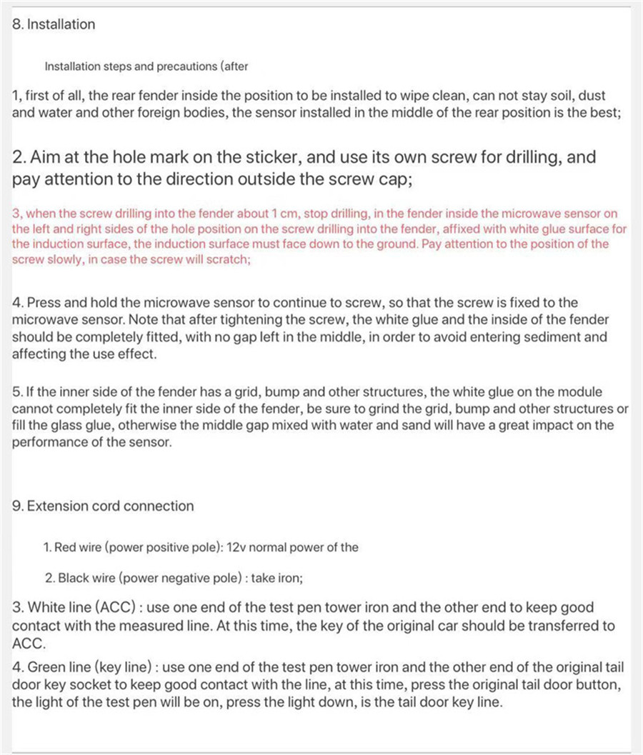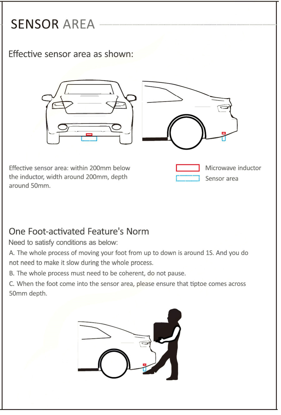 1.The third generation of products USES microwave induction, which is more convenient than the traditional induction system installation, and more effective to prevent the wrong trigger.If something else goes under the car, the door won't open.