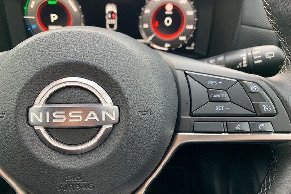 ..12.3'' full colour TFT screen combimeter, Drive modes select (Eco, normal and sport), e-Pedal step, Emergency and breakdown call, EV mode switch, Front parking sensor, Intelligent driver alert system, Intelligent lane intervention, Lane departure warning system, Nissan connect 12.3'' touch screen entertainment system, Nissan connect nav with TomTom traffic, Nissan connect services, Outside temperature sensor, Power Steering, Rear parking sensor, Stop/start button, Traffic sign recognition, Trip computer, Voice recognition, WiFi connectivity, Wireless Apple CarPlay and Google Android auto, Wireless Smartphone charger, 2 X Rear console USB port, 6 speakers, Bluetooth system, USB, Aux-in and 12V socket, DAB Digital radio, Auto dimming frameless rear view mirror, Automatic hazard signal with emergency stop signal, Body colour door handles, Electrically adjustable door mirrors with integrated indicators, Follow me home headlights, Front and rear electric window with one touch driver window, Heated and auto folding door mirrors, High beam assist, LED 3rd brake light, LED daytime running lights, LED headlamps, LED rear fog lamp, LED rear lamps, One touch passenger window, Rain sensor windscreen wipers, Rear privacy glass, Rear side wing doors, Rear wiper, Roof spoiler, Shark fin roof antenna in solid Black, Three blink turn signal, 3 height adjustable rear headrests, 3 seat bench in 2nd row, 60/40 split folding rear seat, Automatic climate control, Card holder on driver sunvisor, Cloth/Synthetic leather with melange fabric inserts, Driver side rear coat hanger, Driver/passenger sunvisors and vanity mirrors, Front and rear cabin lights, Front armrest, Front door pockets with bottle holders, Front head restraints, Front/rear passenger grab handles, Height adjustable driver's seat, Internal chrome door handles, Leather gearshift knob, Luggage board, Luggage space lighting, Monoform sporty seats, Multifunction steering wheel, Rear door bottle holders, Single front passenger seat, Smooth synthetic leather steering wheel, Synthetic leather kneepad, Telescopic steering wheel adjustment, Two cupholders in front centre console, Two rear isofix child seat anchorage points with top tether, Welcome light and console tray ambient lighting, ABS with EBD and brake assist, Active ride control, Active Trace Control, Driver and passenger airbags, Driver and passenger side airbags, Electric handbrake with auto hold function, Electronic Stability Programme (ESP), Front and rear